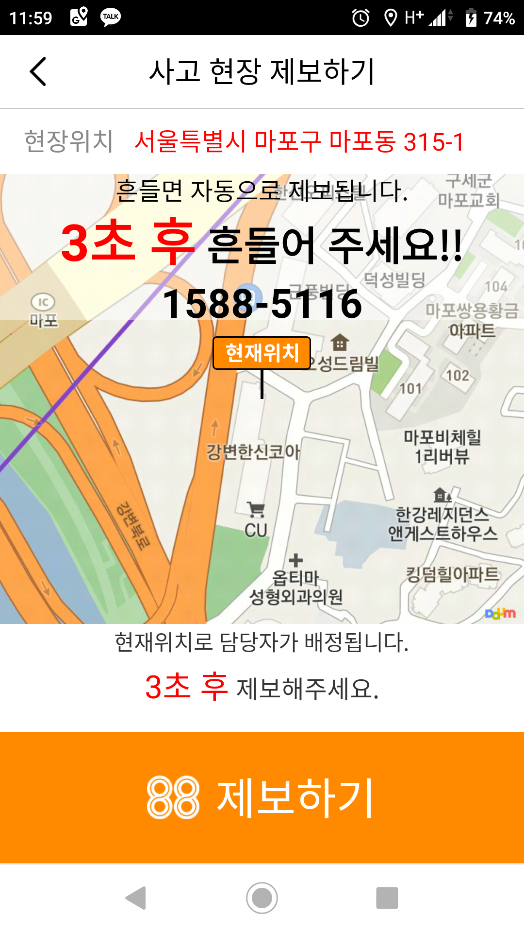 지도위치잡는 시간 2~3초후 제보 (정확한 위치파악)