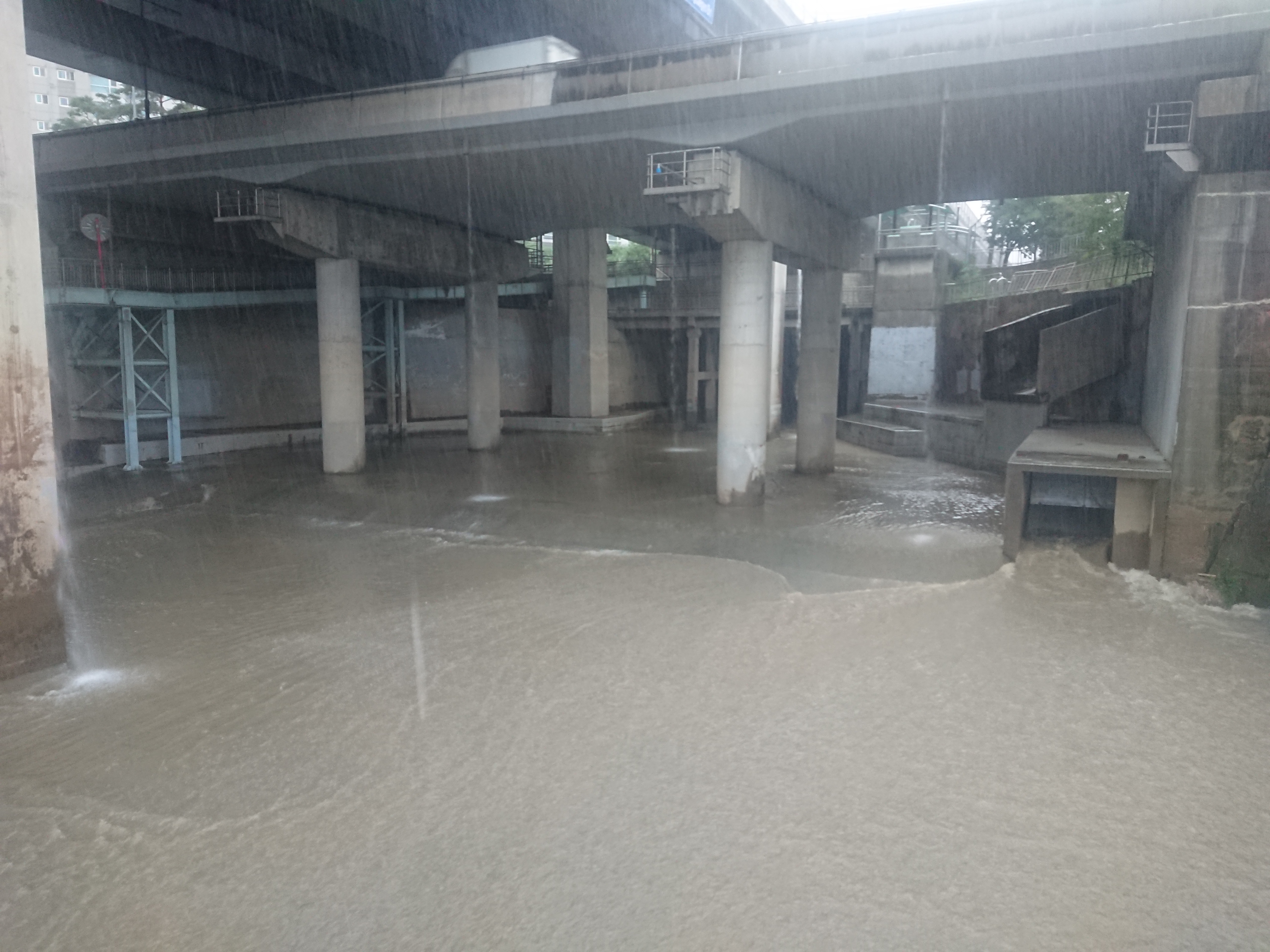평소에 콘크리트 바닥인 이곳도 물이 가득 찼습니다.