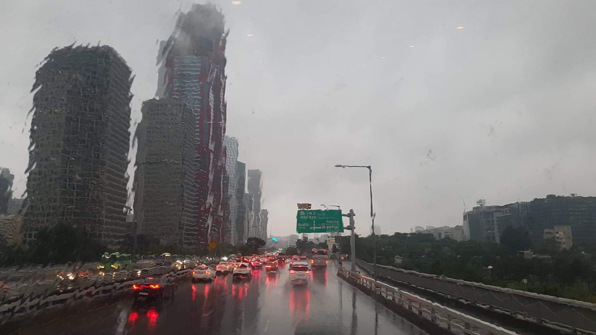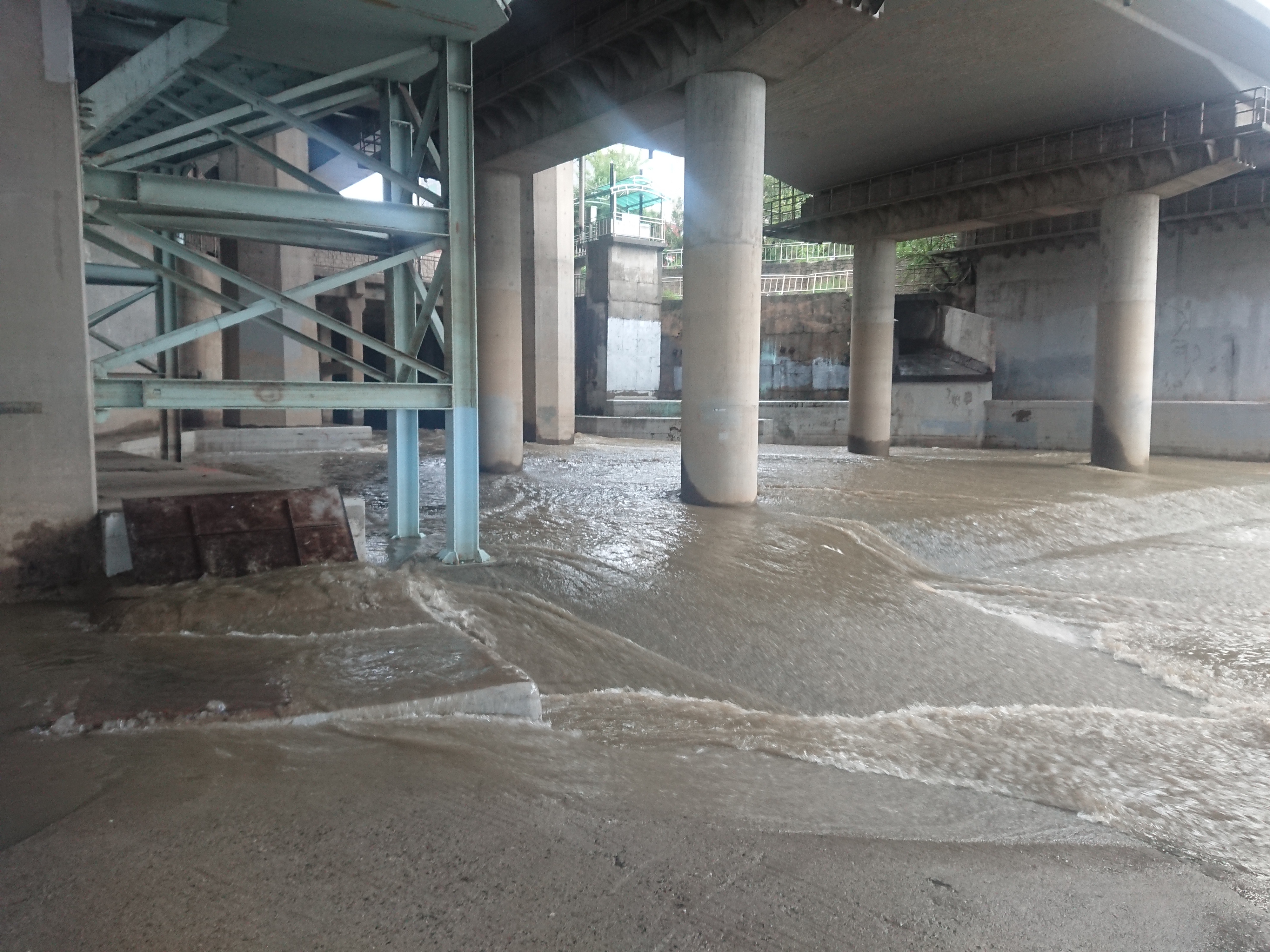 강변북로 아래라 물에 젖지 않는 지역임에도 이정도 비가 내리치니 물이 고였습니다.