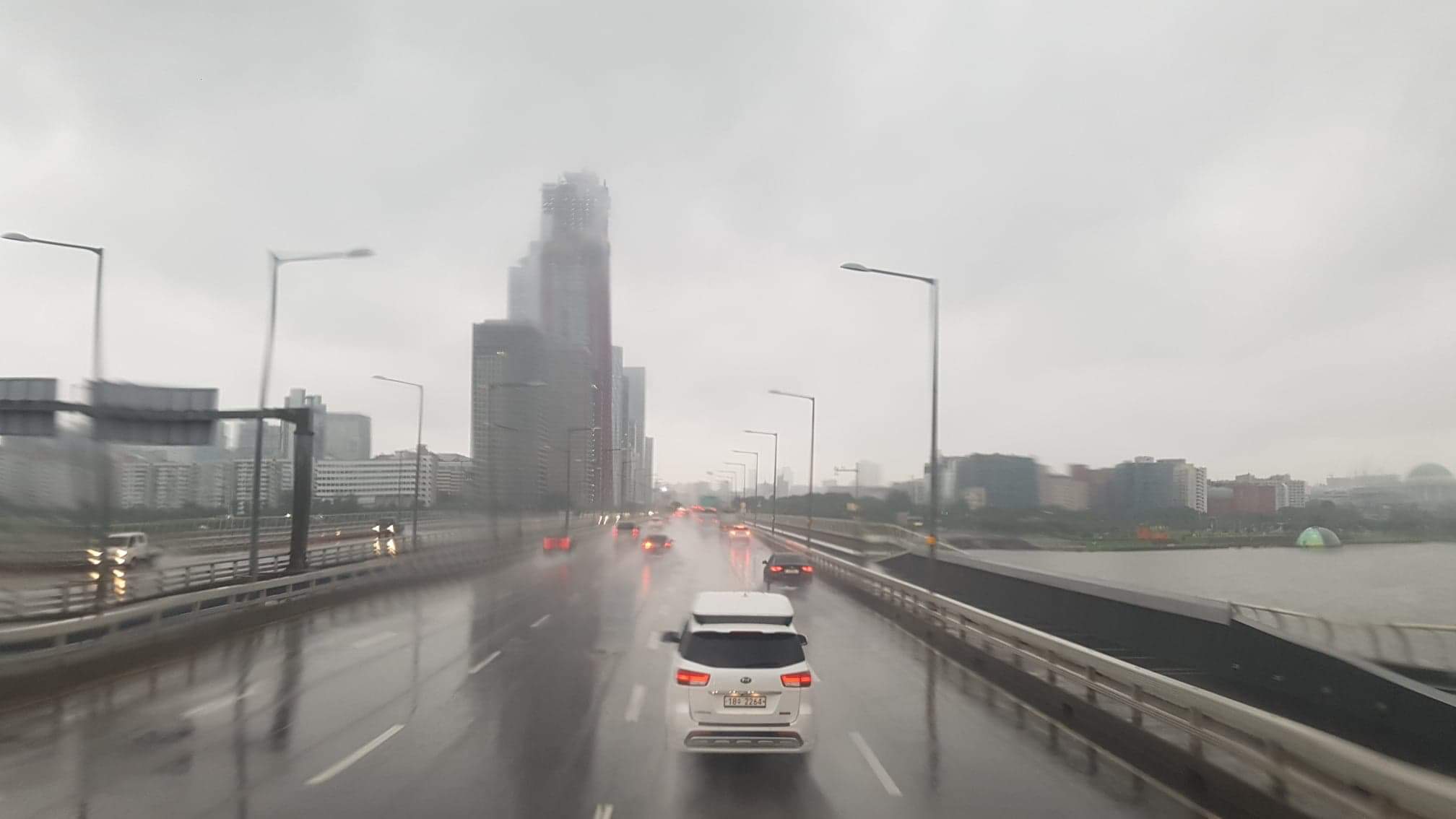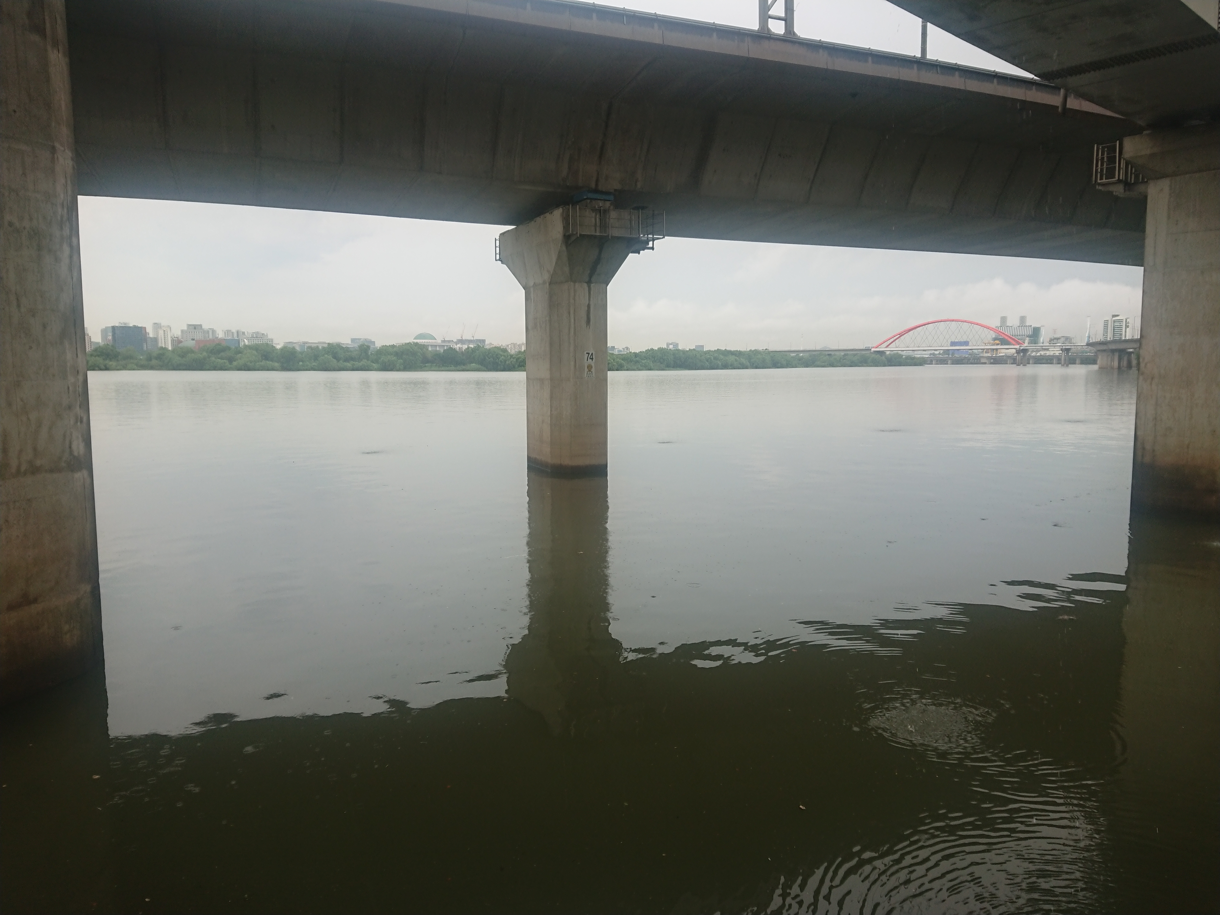 잦아든 비. 멀리보이는 서강대교.