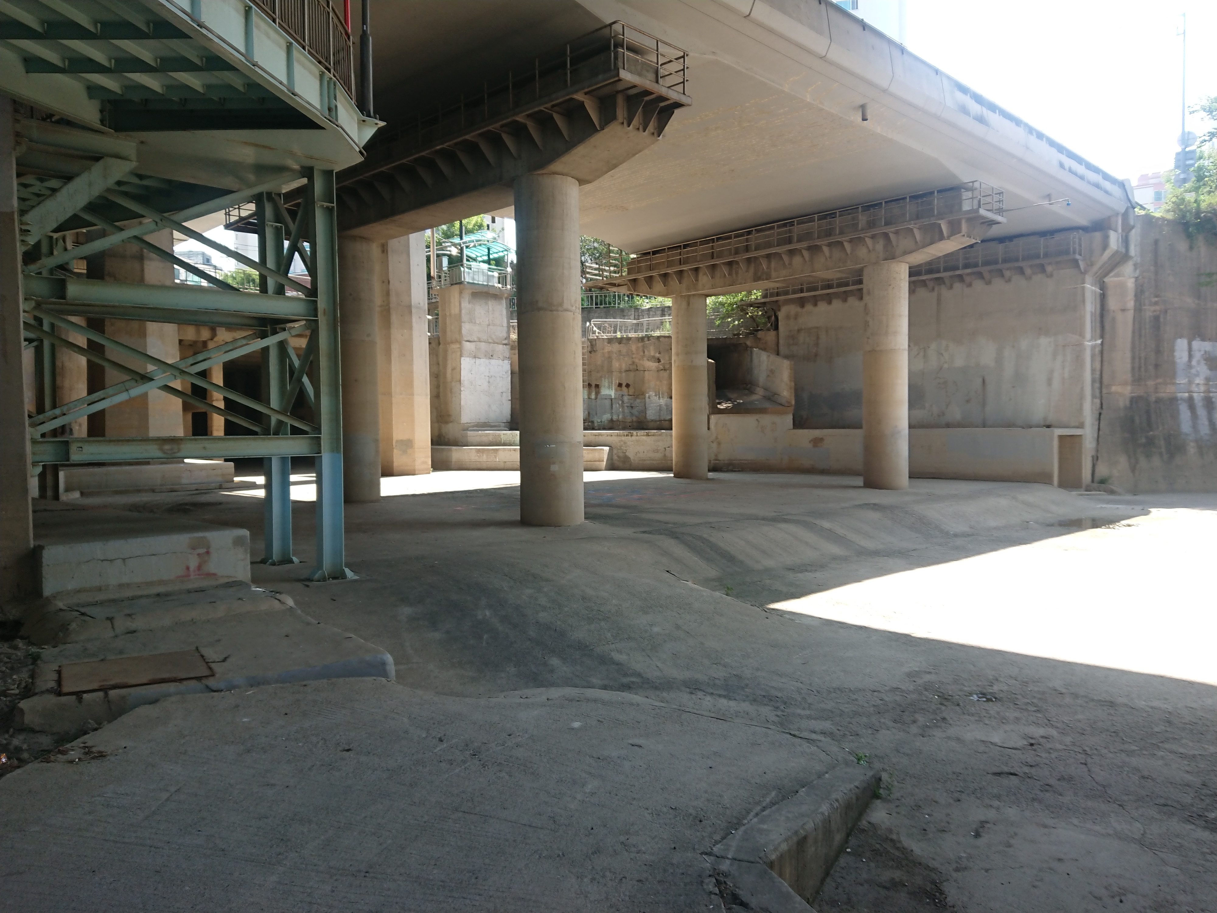 평소에 말라있는 곳인데 가끔 아이들이 축구를 하거나 각종 촬영도 많은 서강대교 밑.