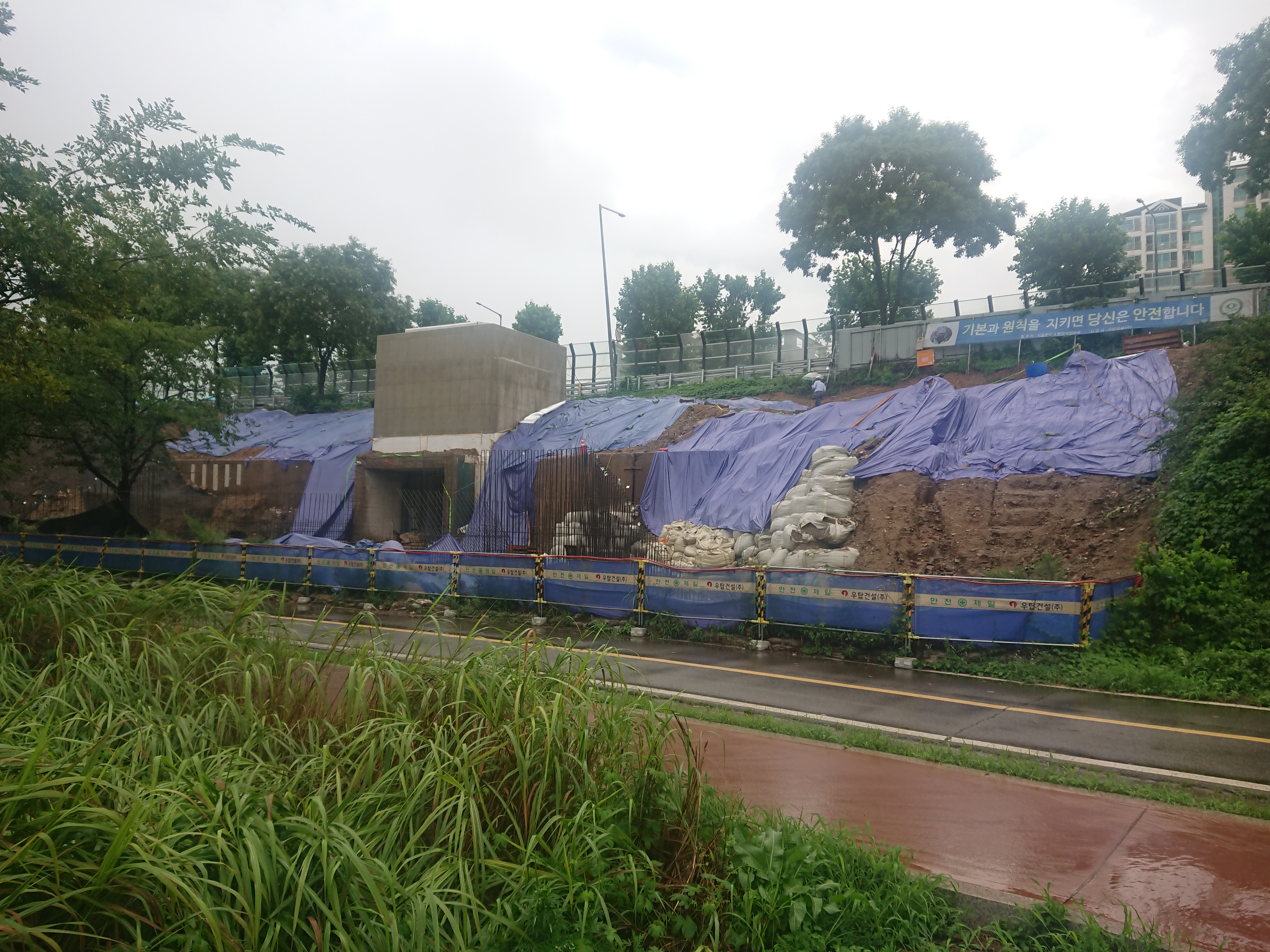 신마포나들목 공사현장 공사가 본격화된지 얼마 안되었는데 비때문에 공사를 쉬는 날이 많아보입니다.