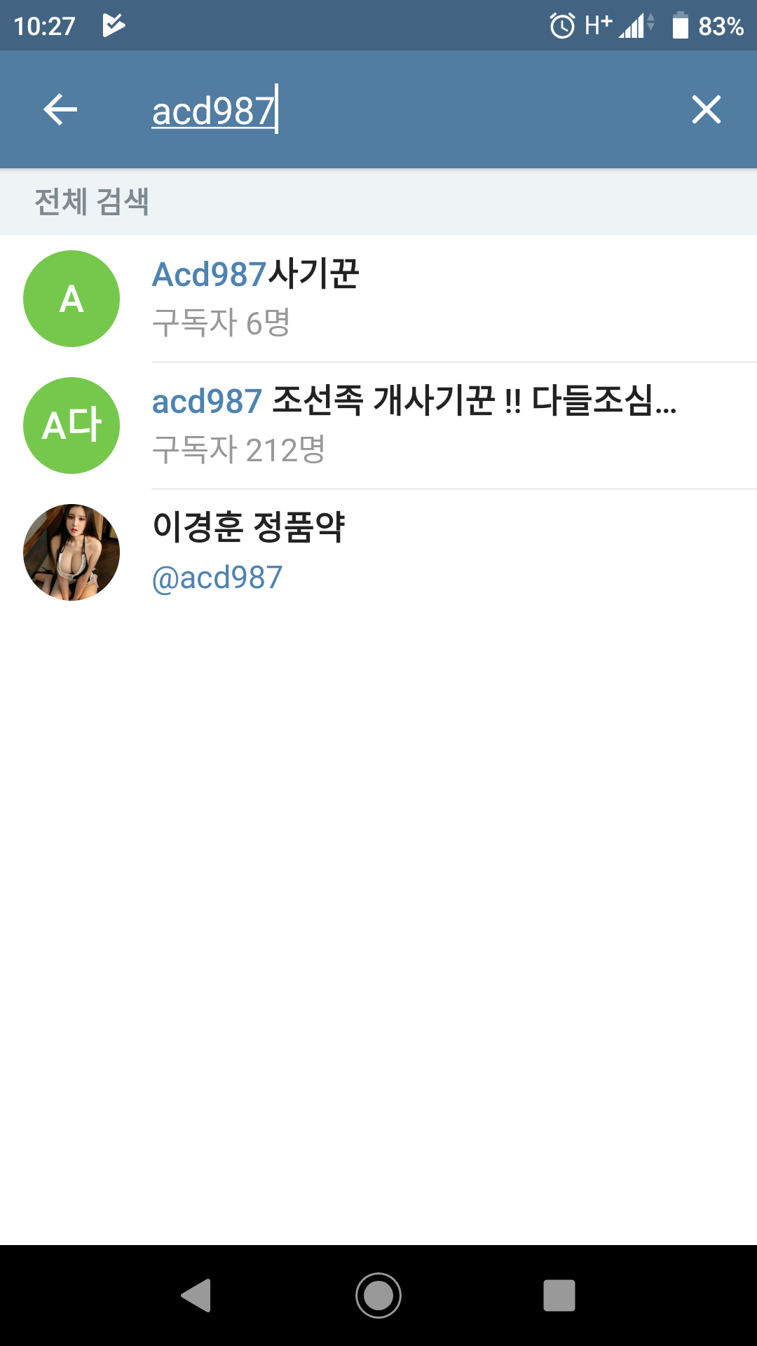 acd987 조선족 개사기꾼!! 다들조심.. 이라는 채널이 생성되어있는것을 보니