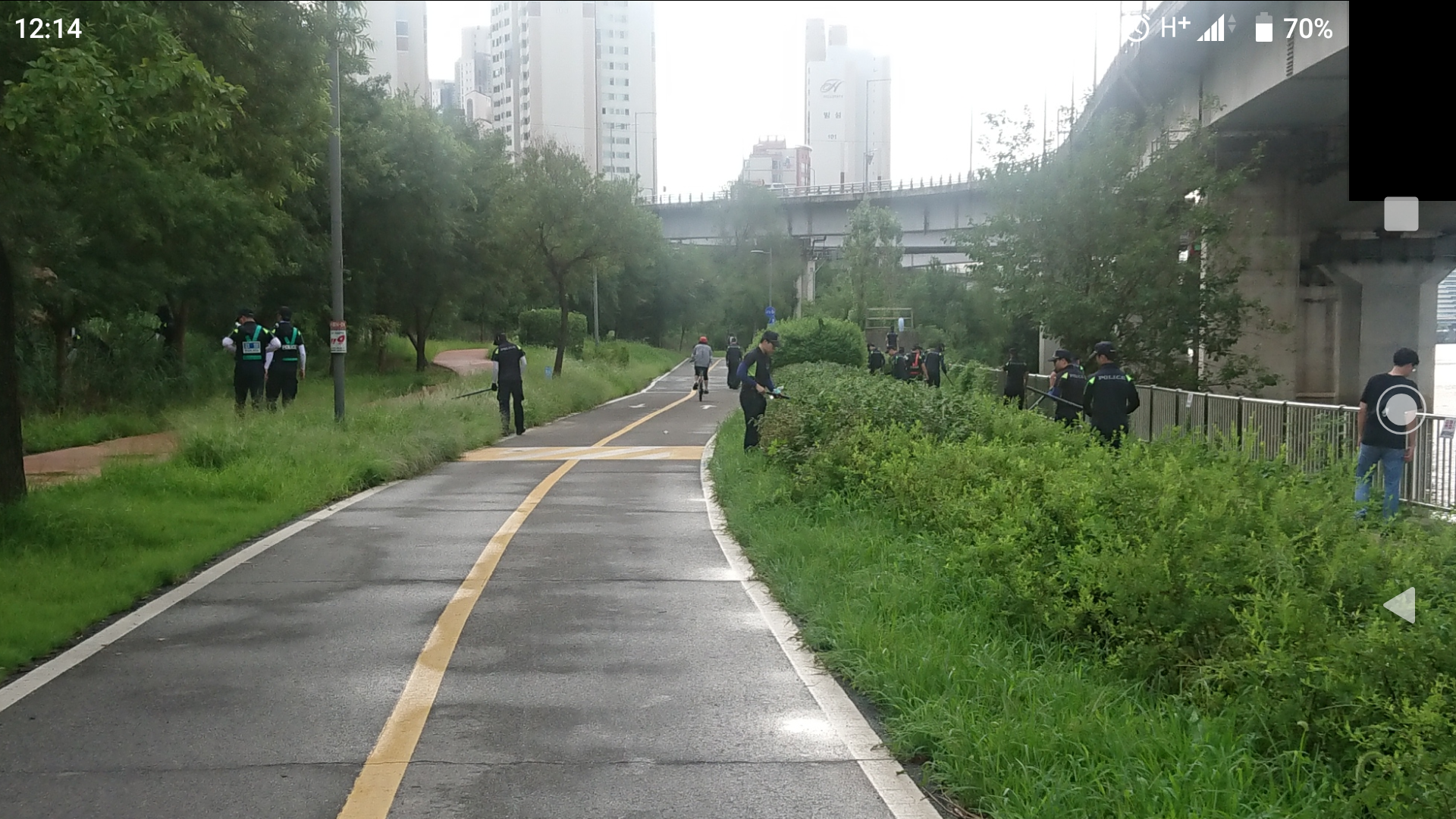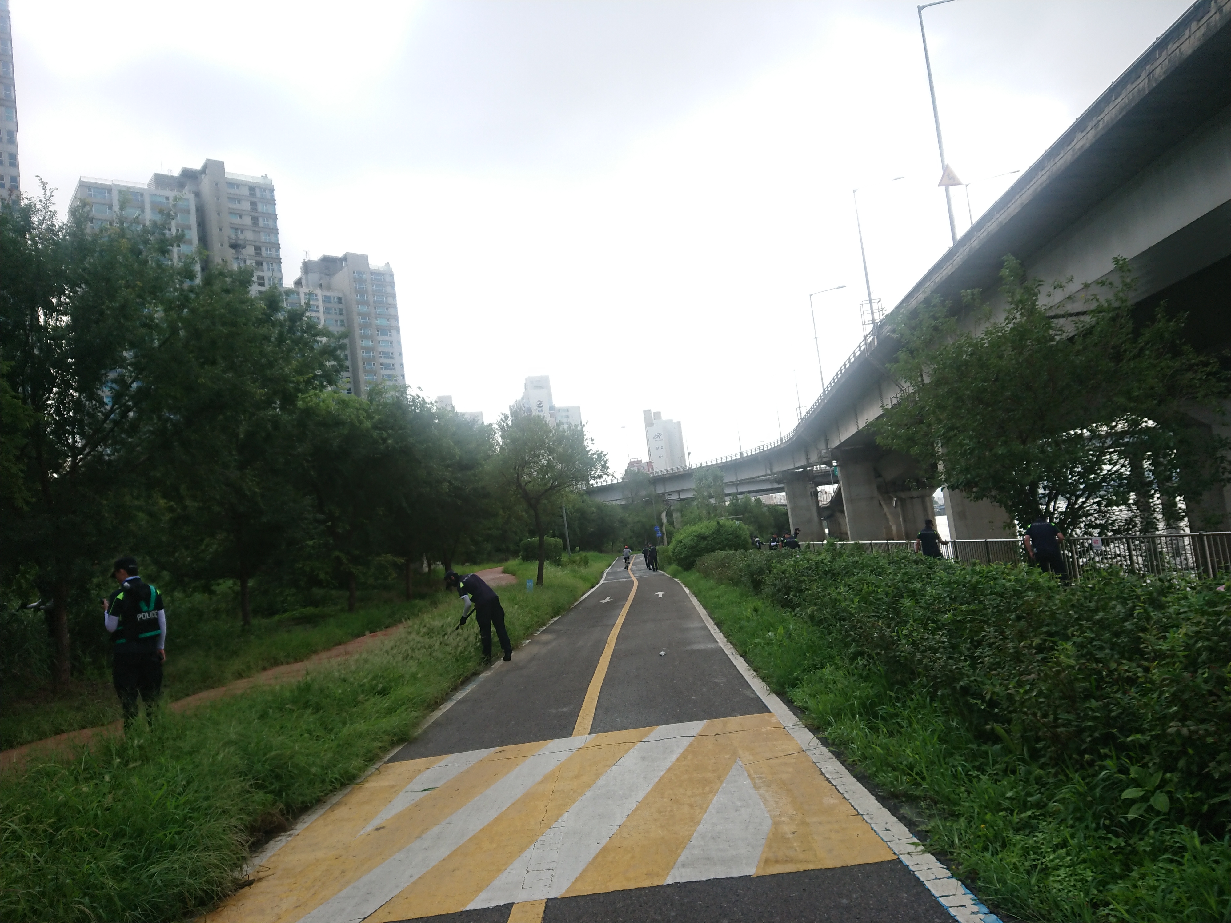 한강 라이딩중. 서강나들목 인근에서 대규모의 경찰병력이 수색을 하고 있는 것을 보았다.