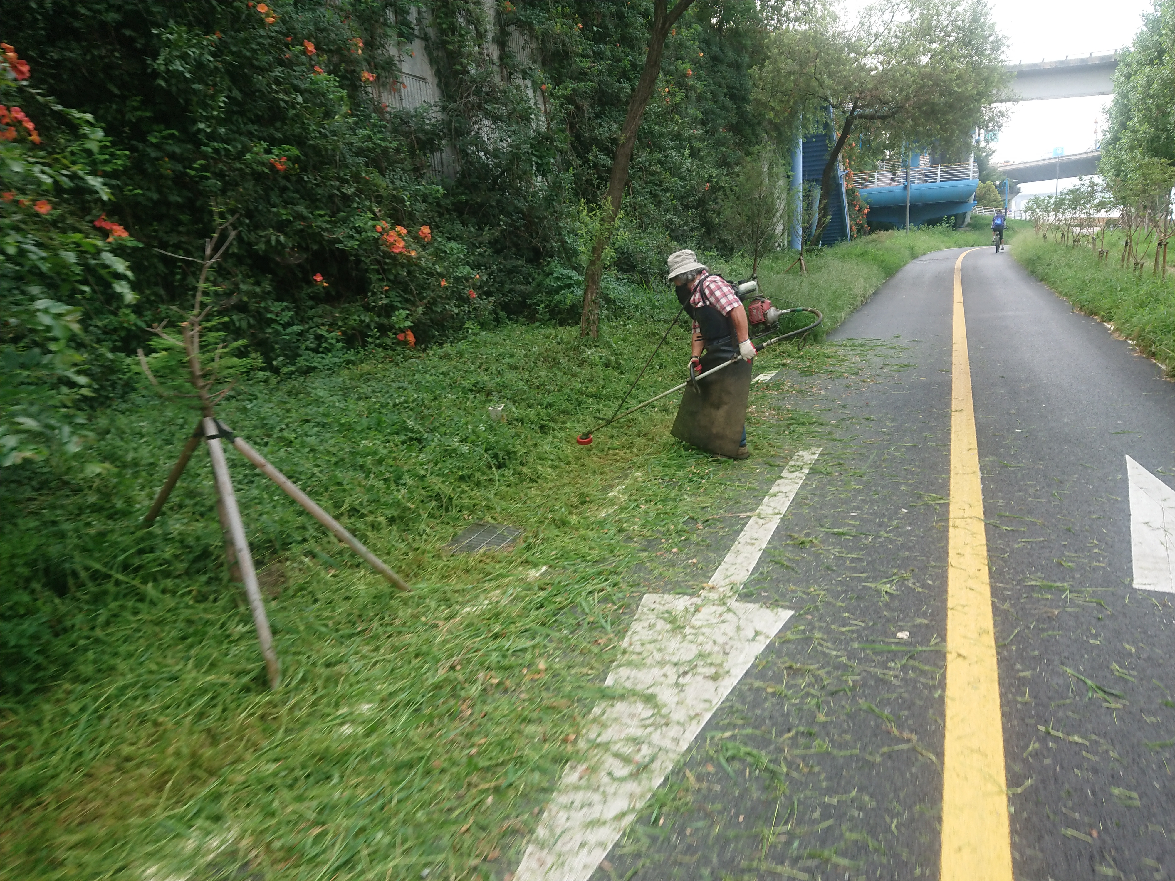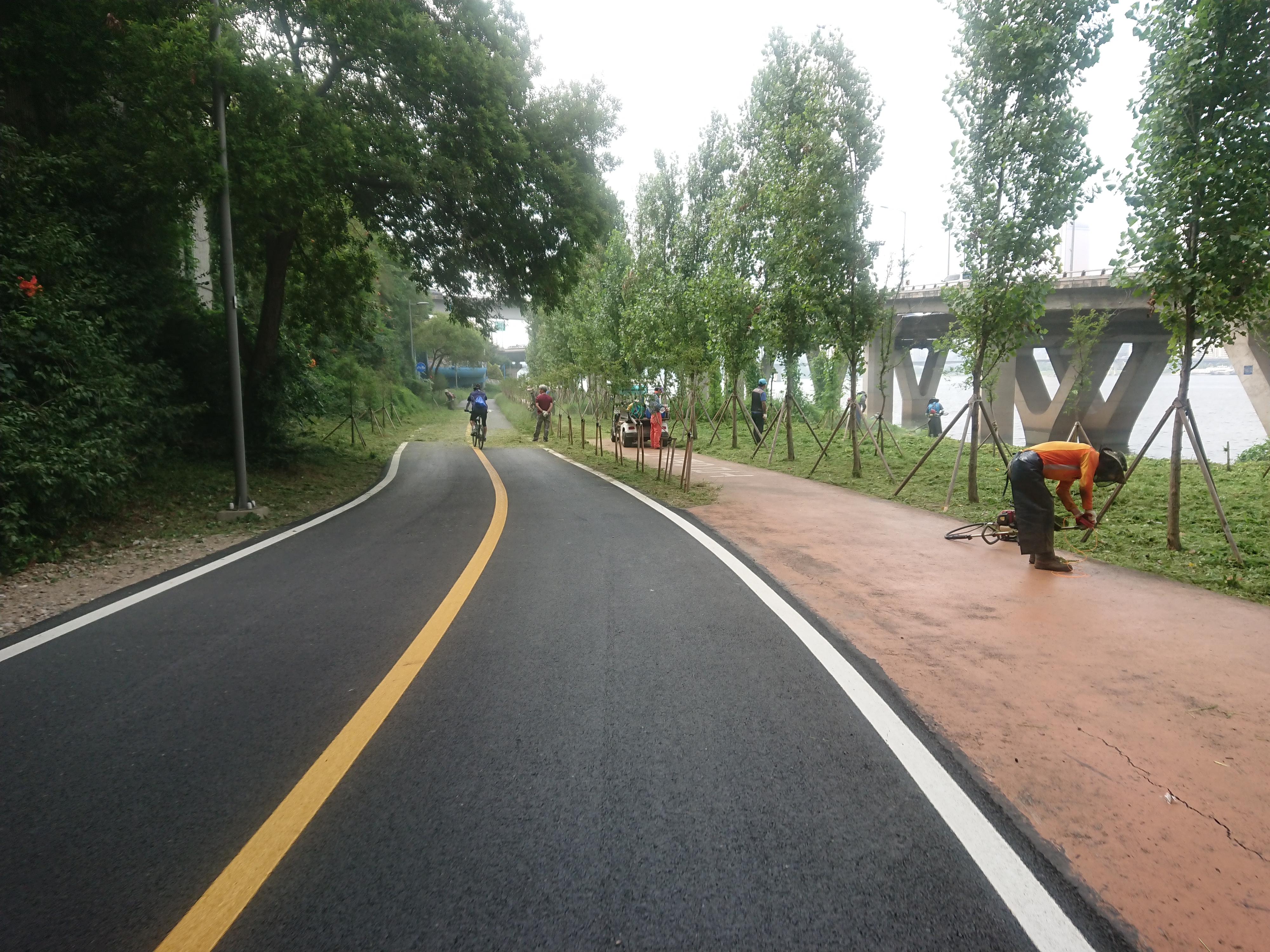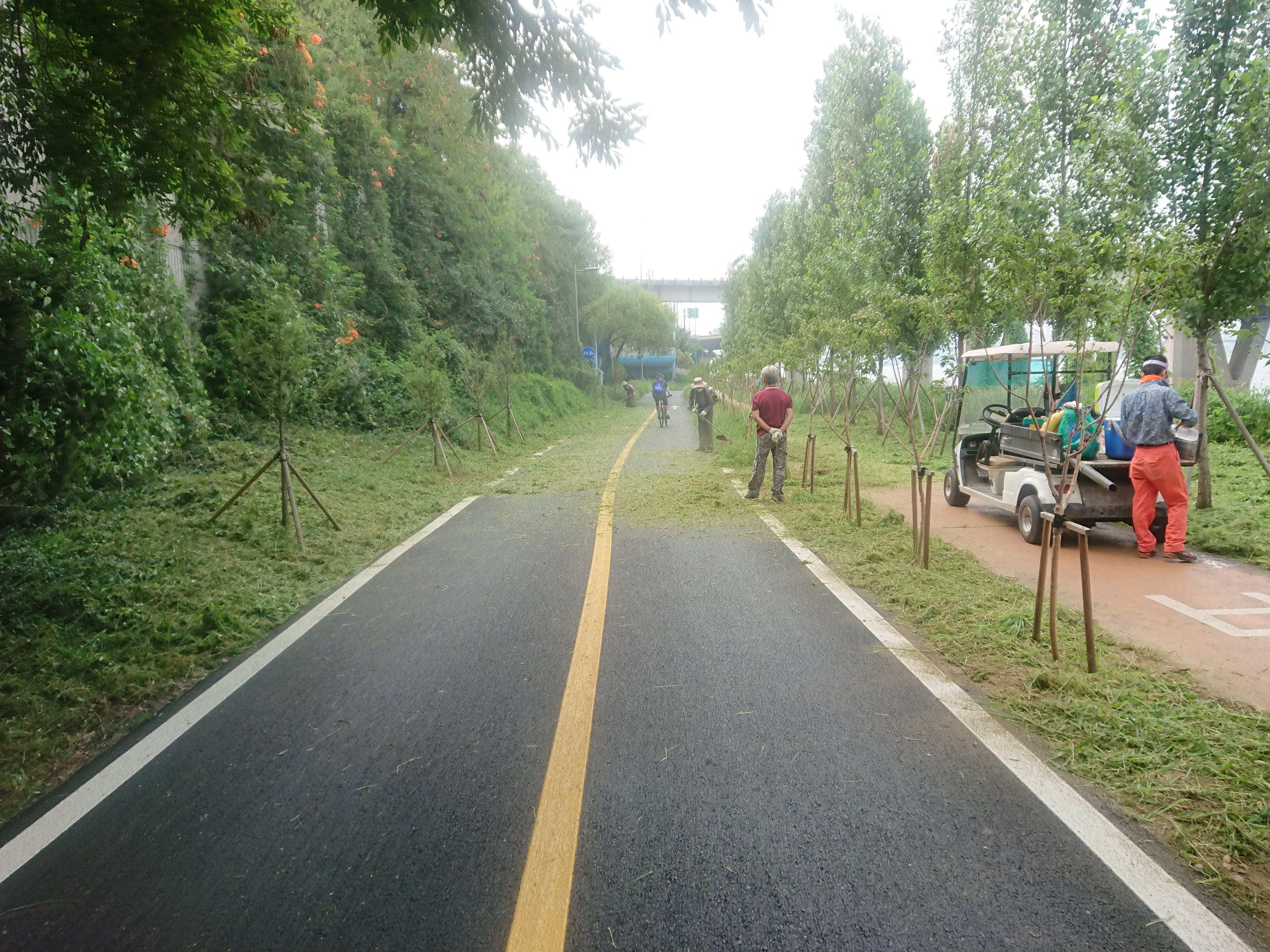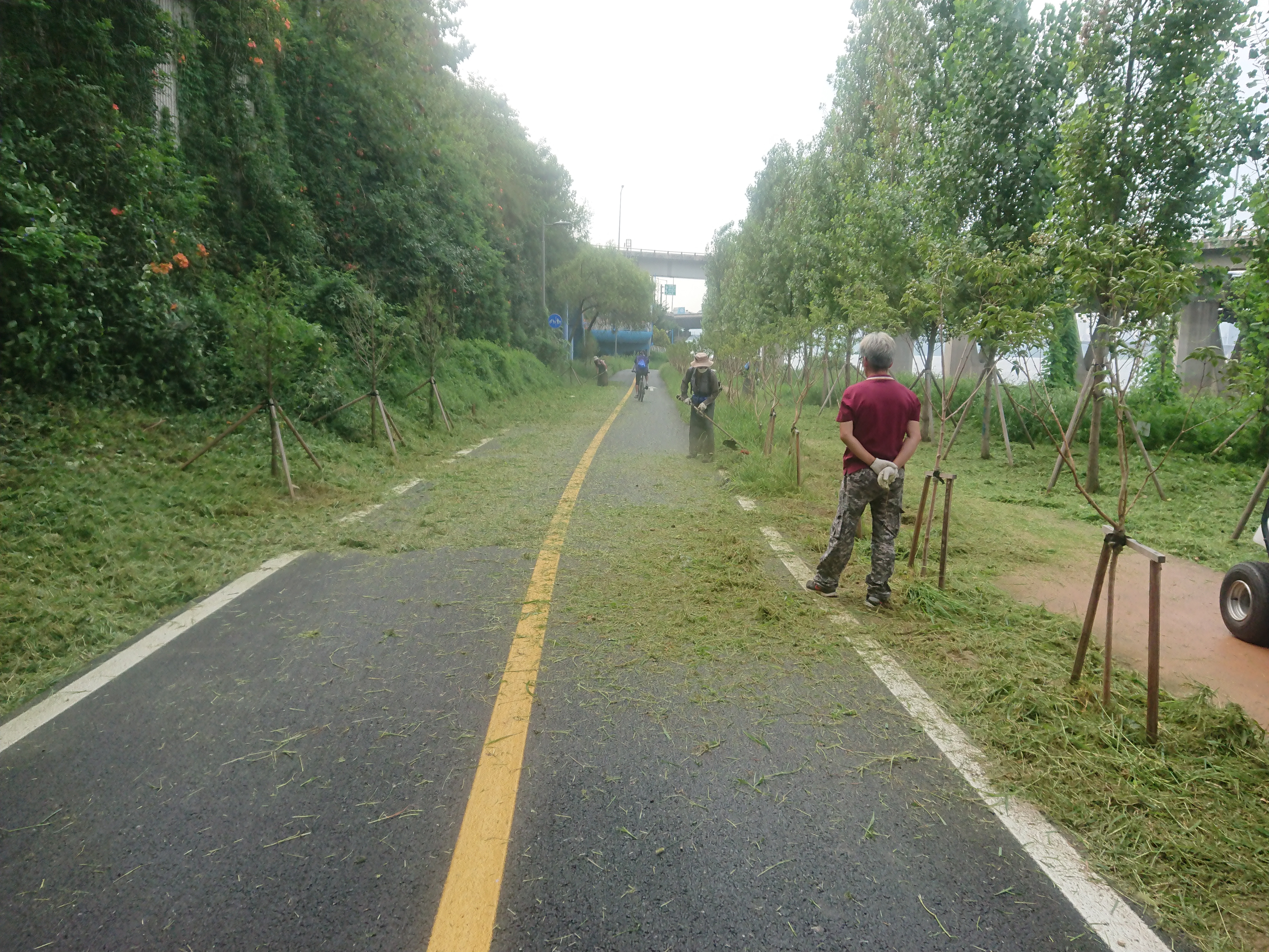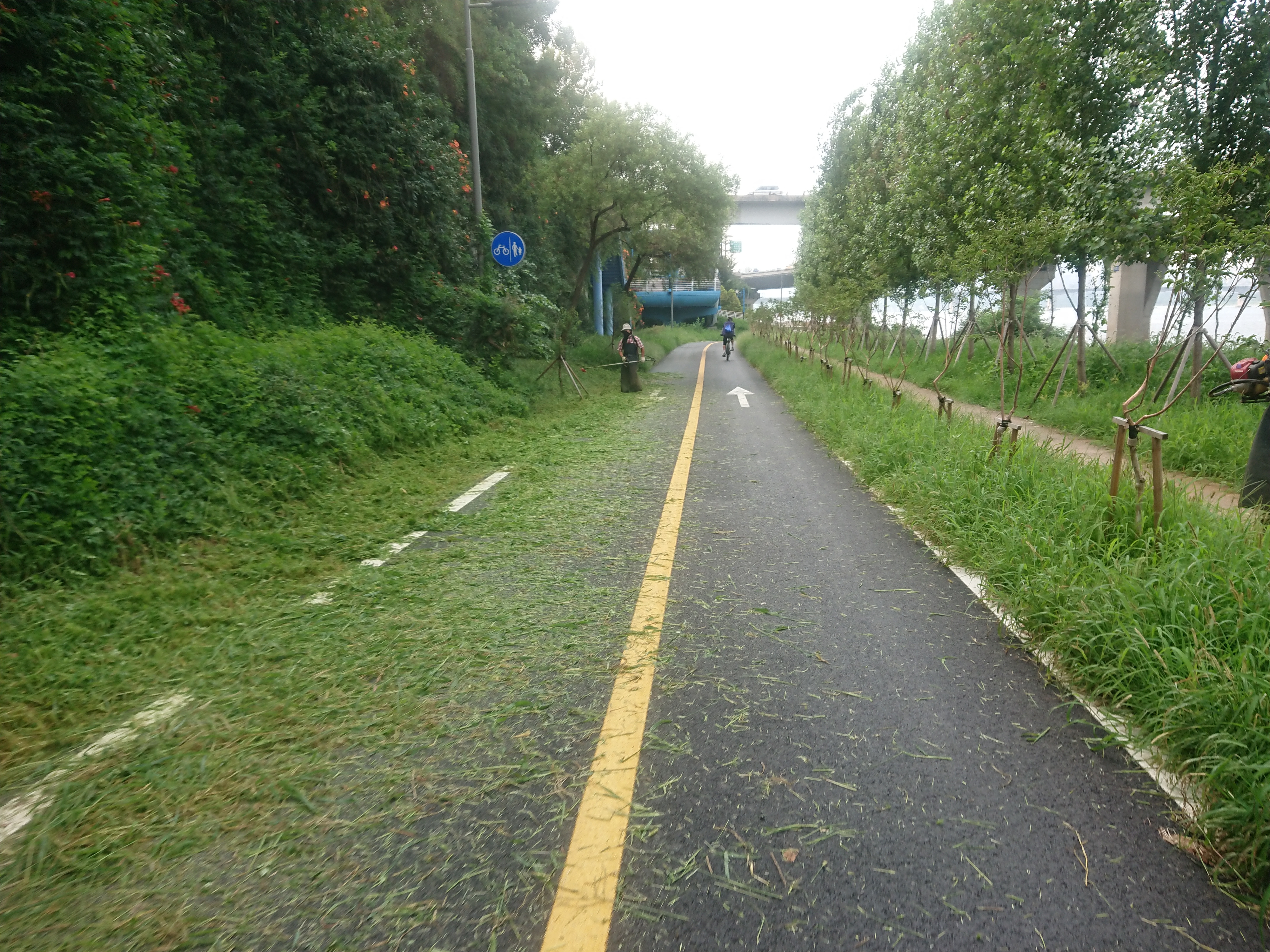 자전거 타고 지나가면 가끔 얼굴에 제초기에서 날아온 풀이나 모래 튀는데.. 좀 따가워요.