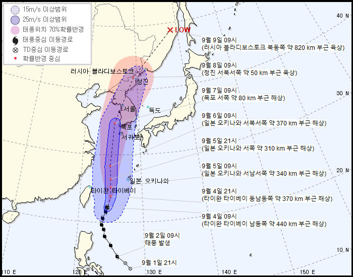 이번 링링은 한반도 그것도 서울을 정면으로 관통하는 태풍이군요.