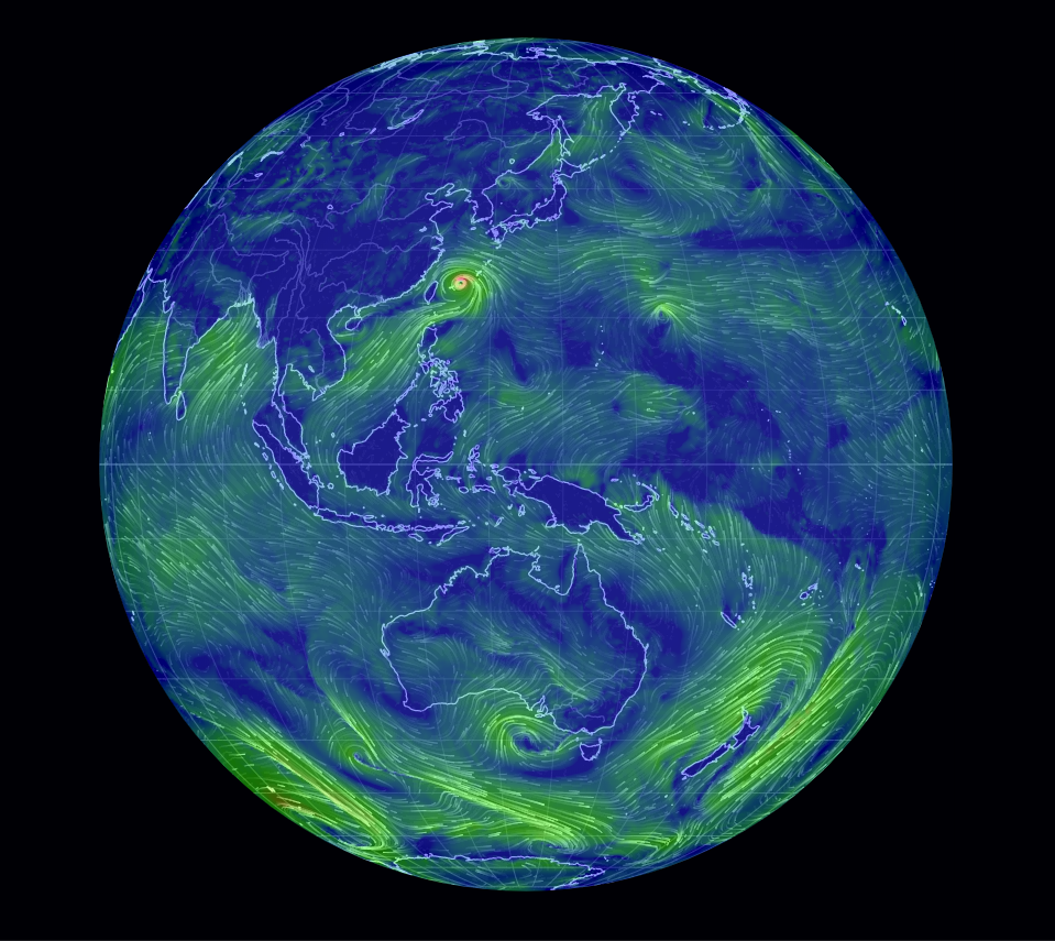 실시간 태풍 이동경로는 earth.nullschool.net 에서 확인이 가능합니다.