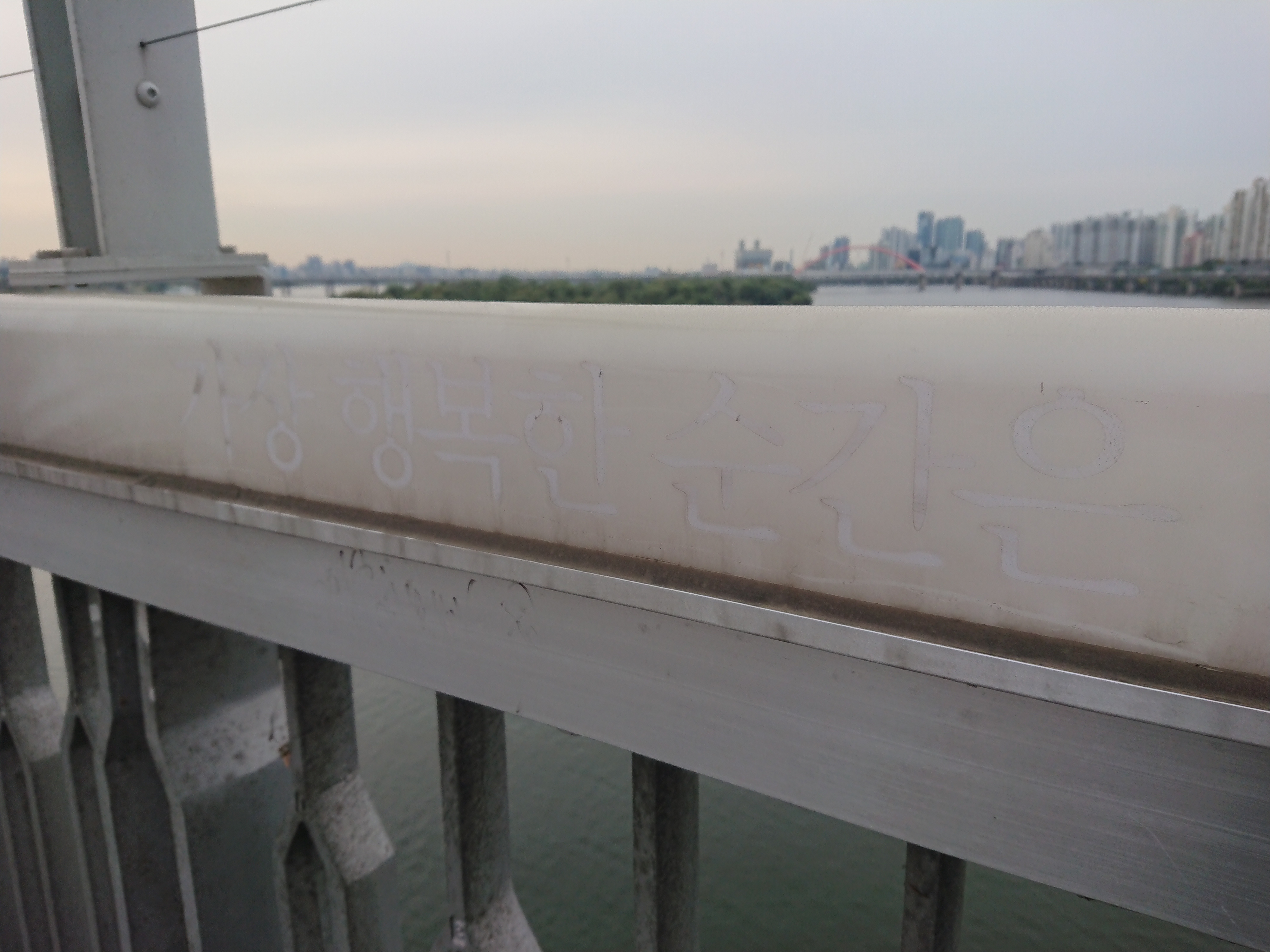 2019년 10월22일의 기사. 마포대교 자살 예방문구 7년만에 제거. ' 효과 떨어져'