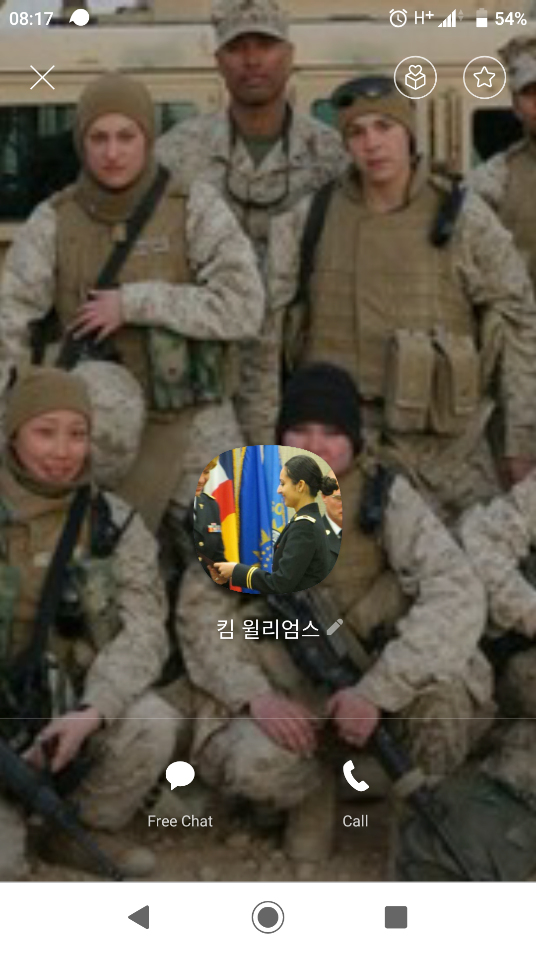 자신은 킴 윌리엄스이며 한국인 어머니를 두고 있으며 아버지는 미국 캘리포니아 출신, 부모님은 자신이 8살일때 자동차 사고로 돌아가셨으며 자신이 유일한 생존자라는 가족사까지 친구등록 10분이 안되 모두 알려줍니다. 가족도 친척도 없으며 그때문에 군인이 되었다고 합니다.