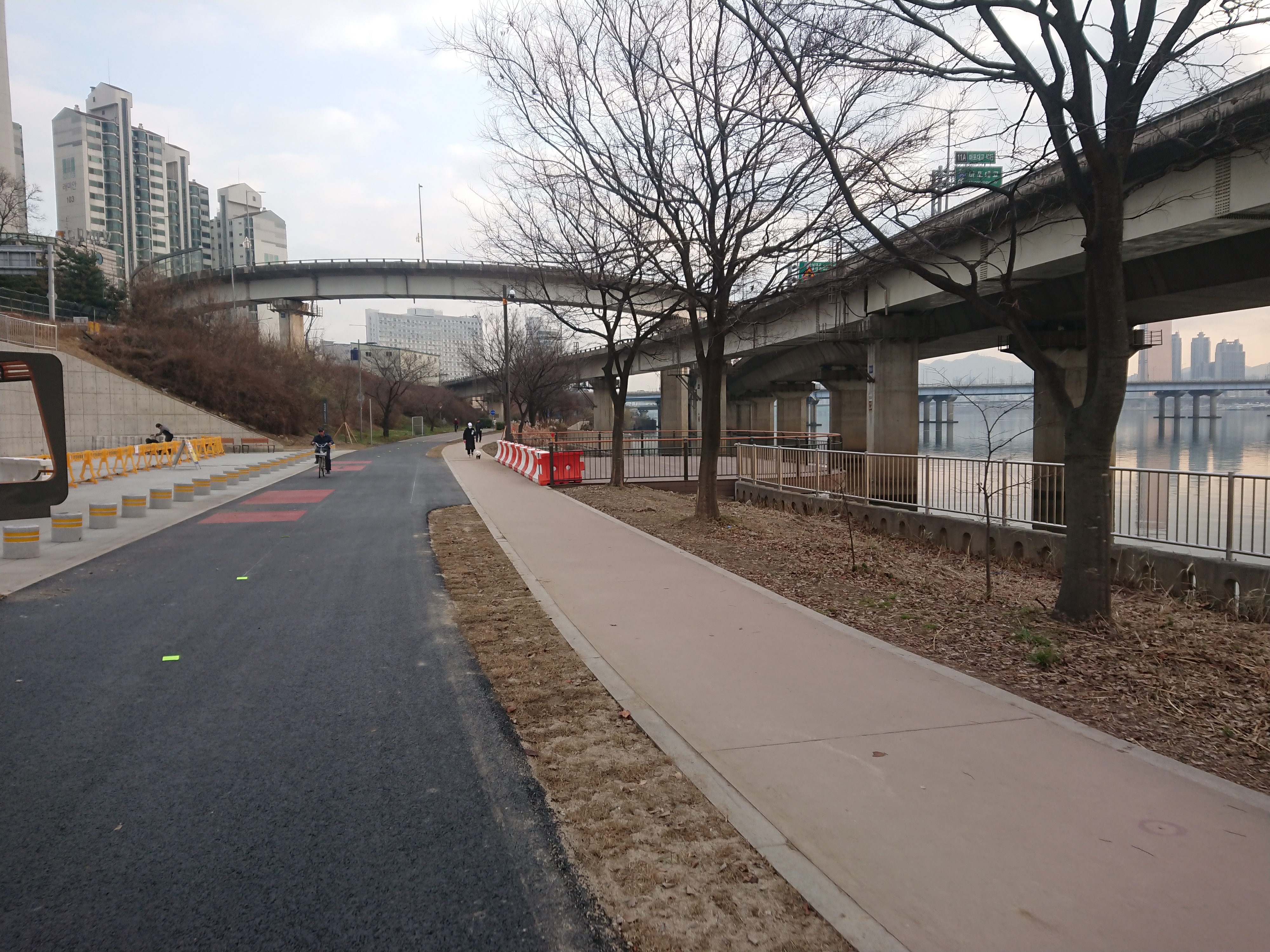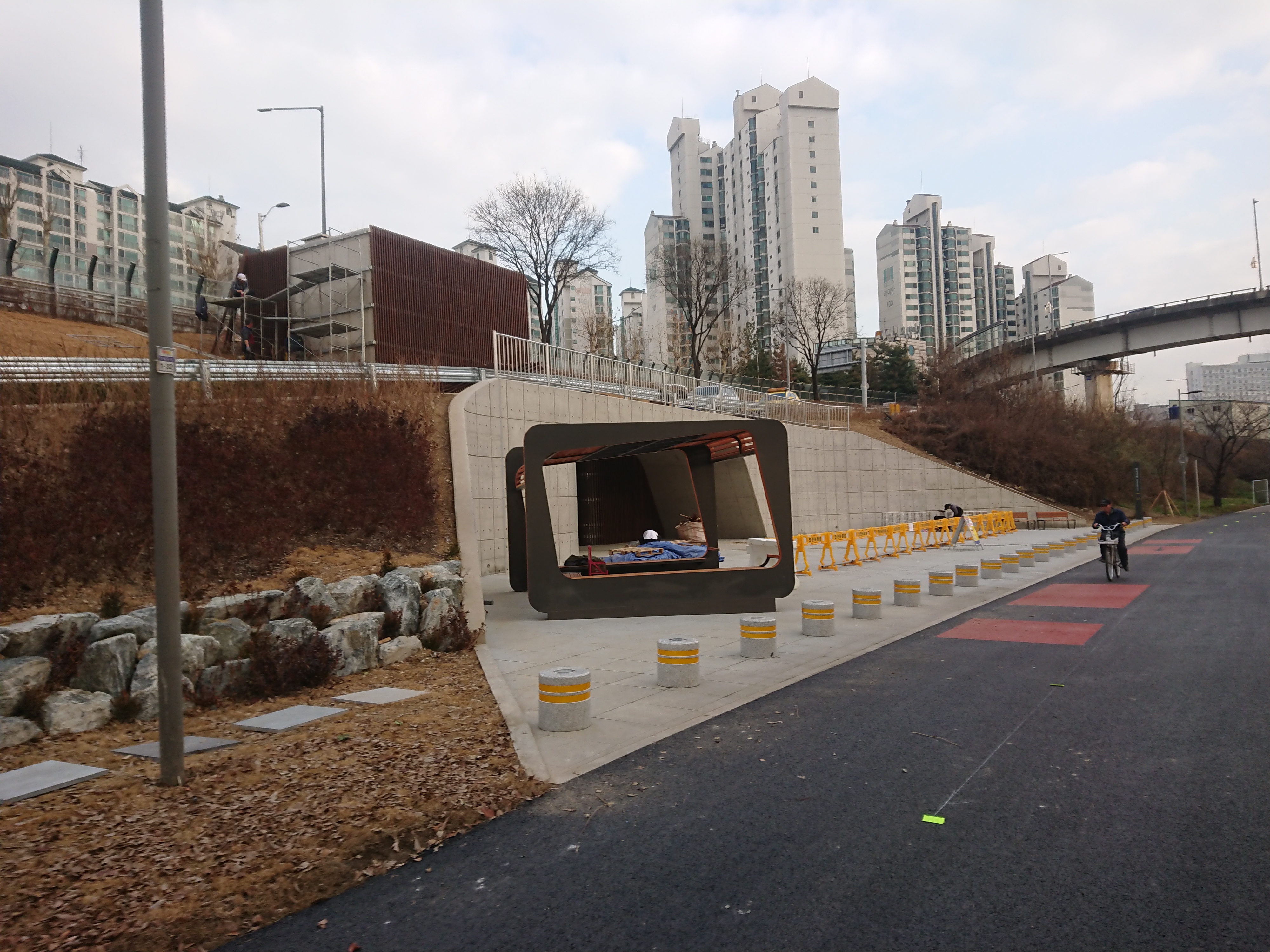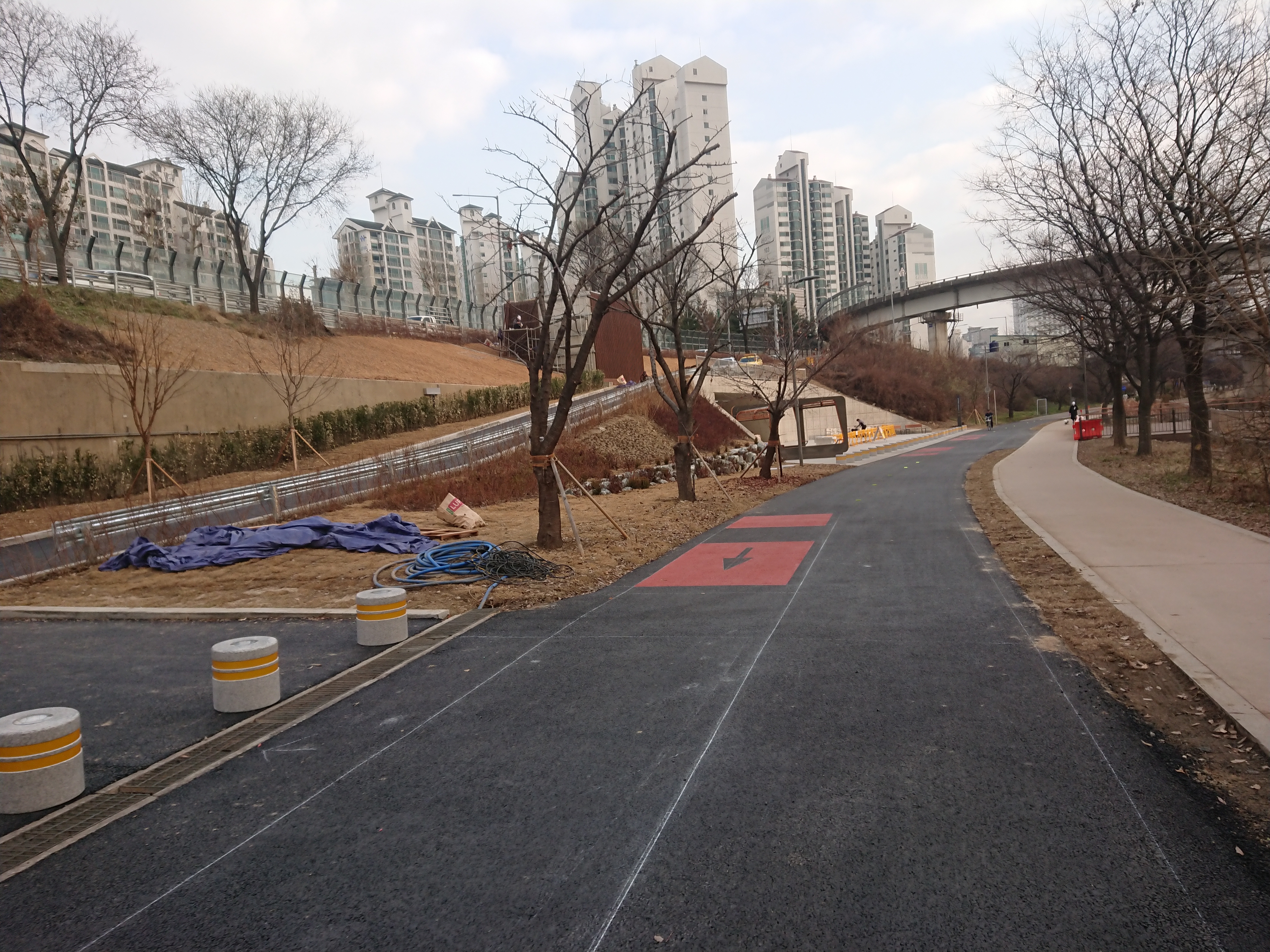 주변에 구조물들이 남아있는 것을 보니 가개통 상태인것 같습니다만 이제 사람도 자전거도 다닐 수가 있습니다.