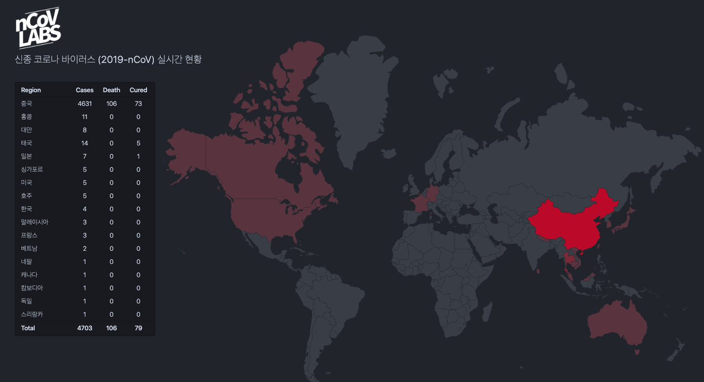 신종 코로나 바이러스 (2019-nCoV) 실시간 현황