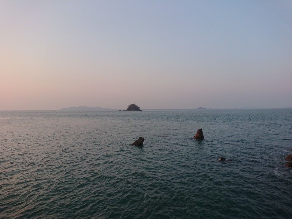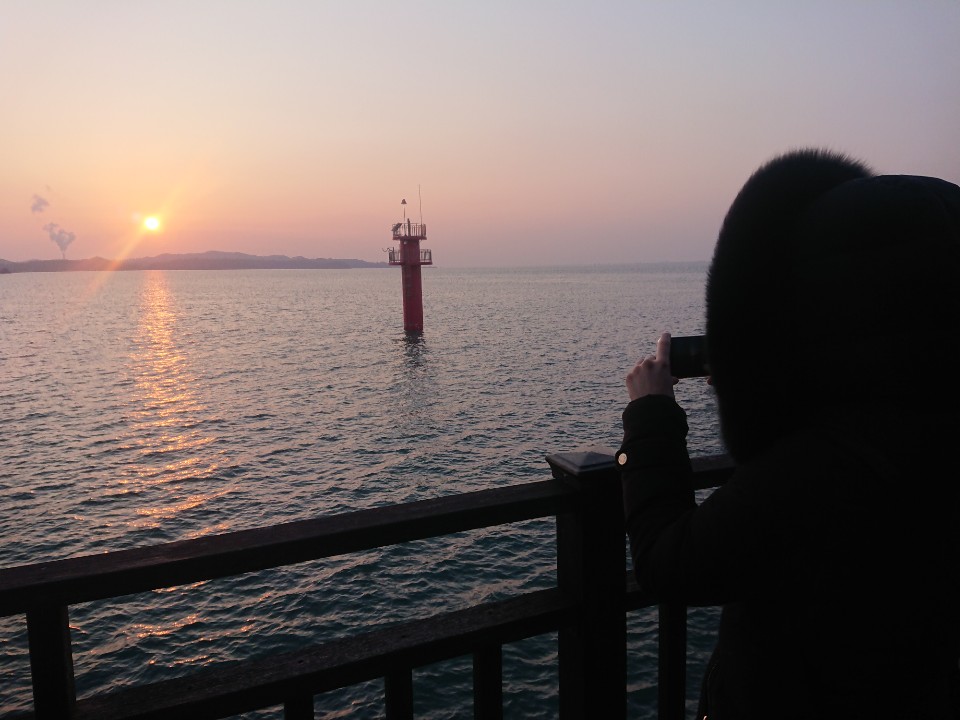 다섯시경 출발해 낙조 전망대에 닿으니 딱 해가 수평선위에 걸린다. ( 2월기준 )