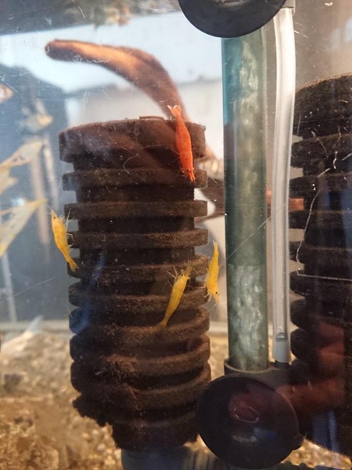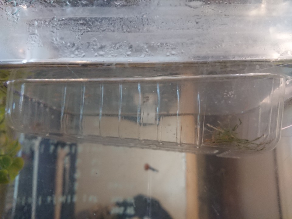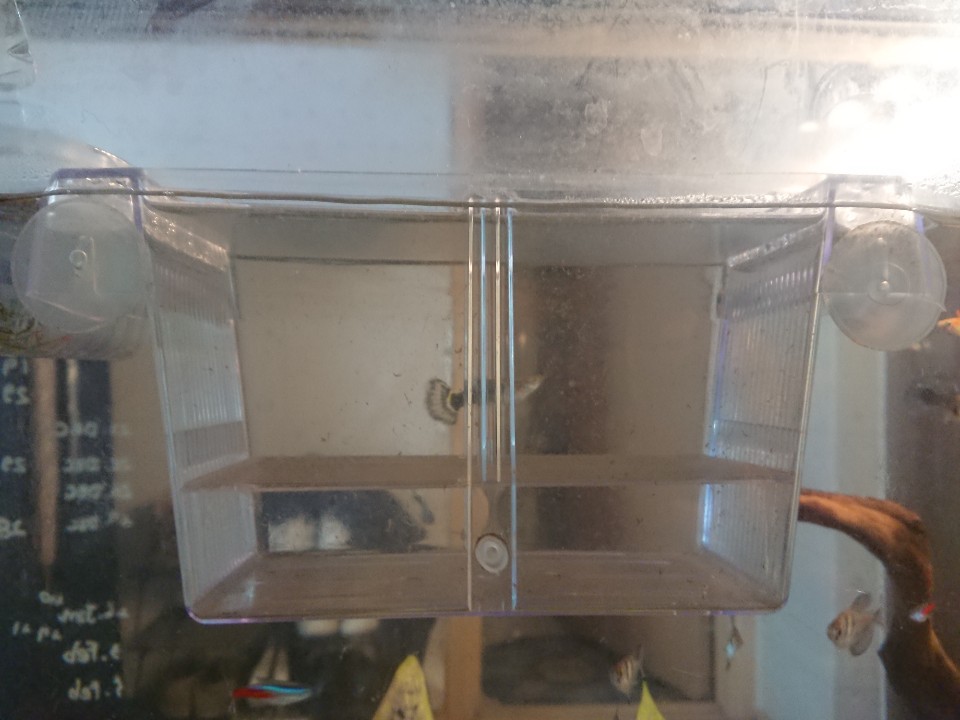 이전에 구피들이 새우 치비들을 먹어버린 사건이 있는지라 부화통으로 옮겼지요.