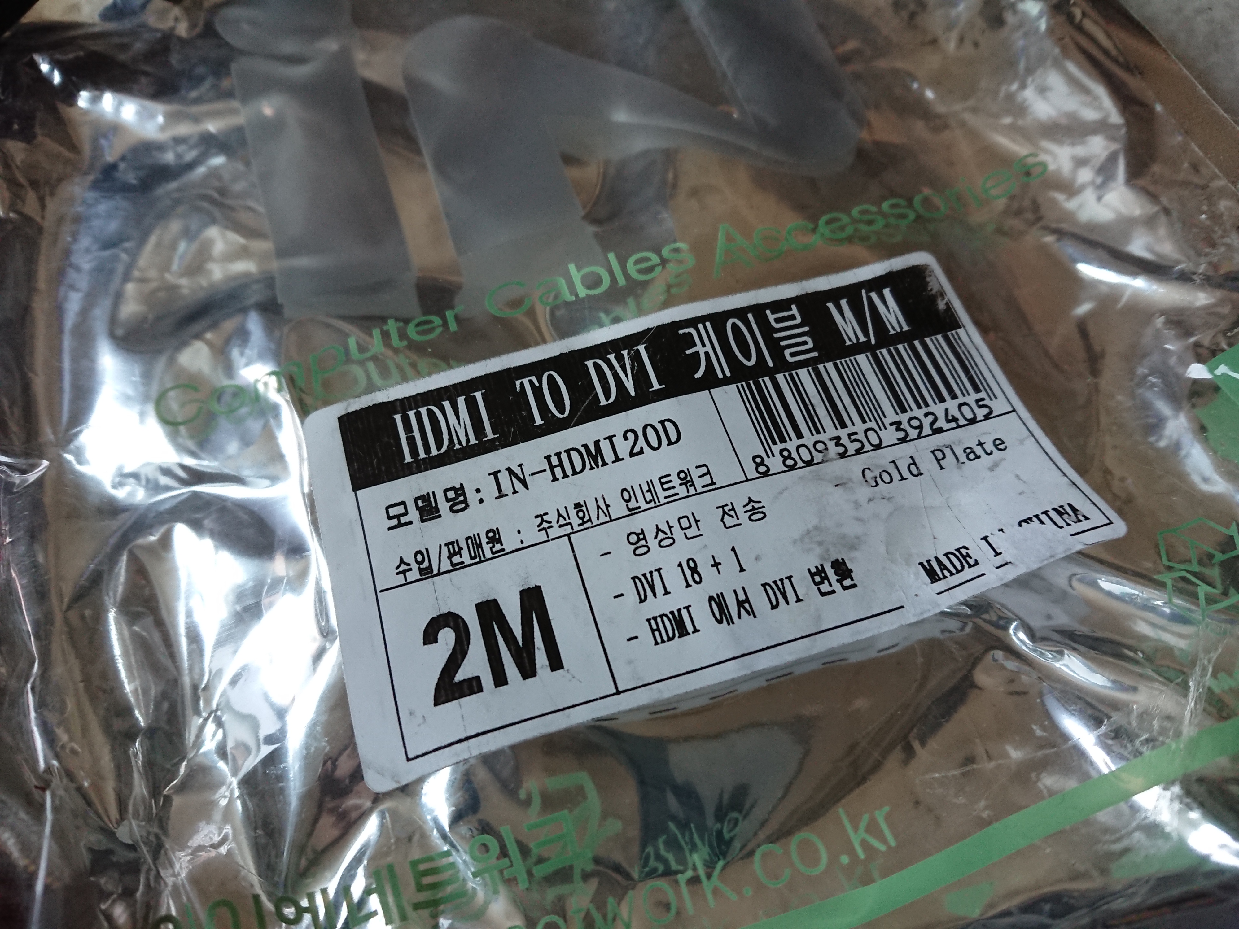 HDMI to DVI 케이블 M/M 모델명 : IN-HDMI20D Gold plate 주식회사 인네트워크