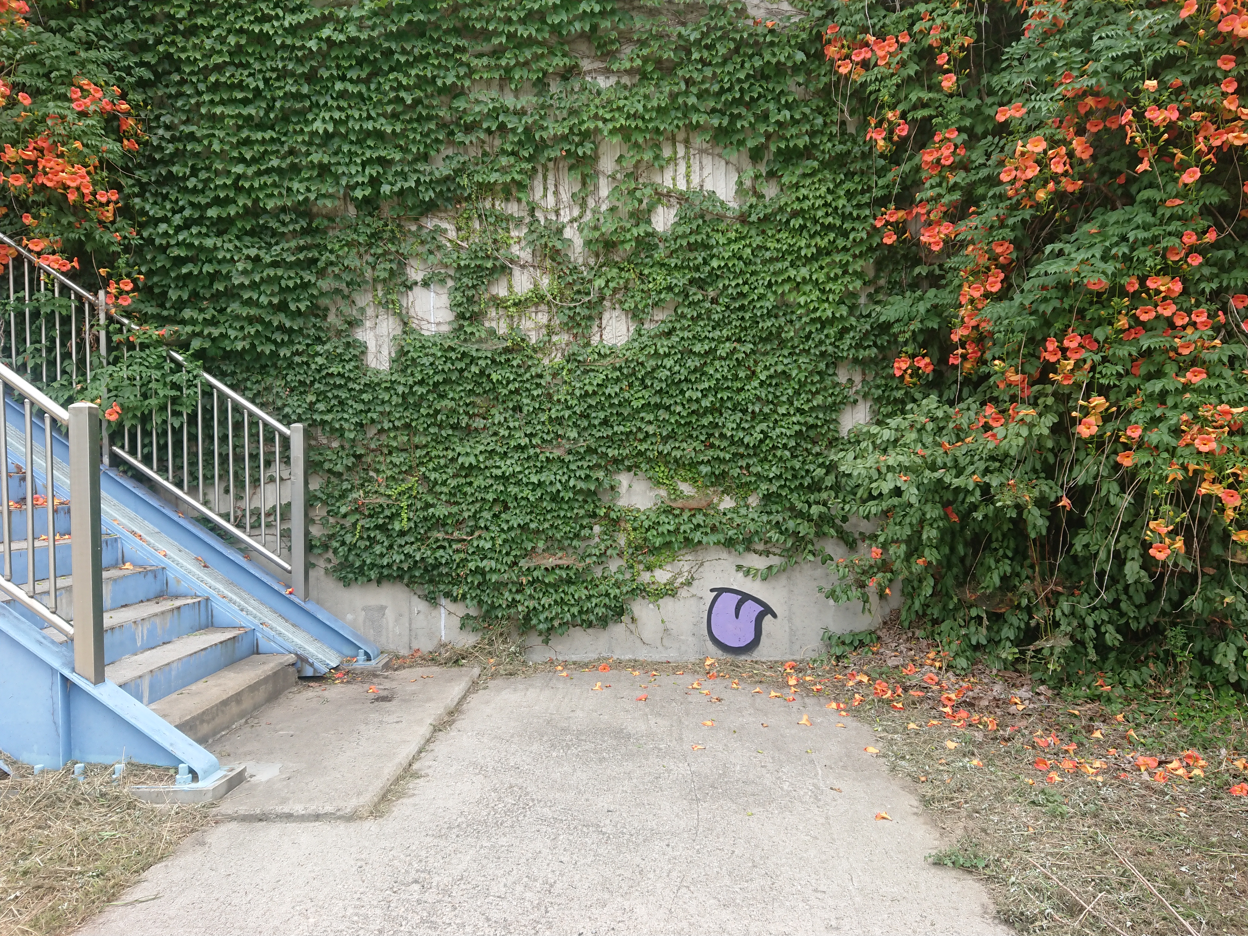 적재적소에 그린, 퍼플컬러로 살포시 메롱하고 내민 혀가 보는 사람을 즐겁게 한다.