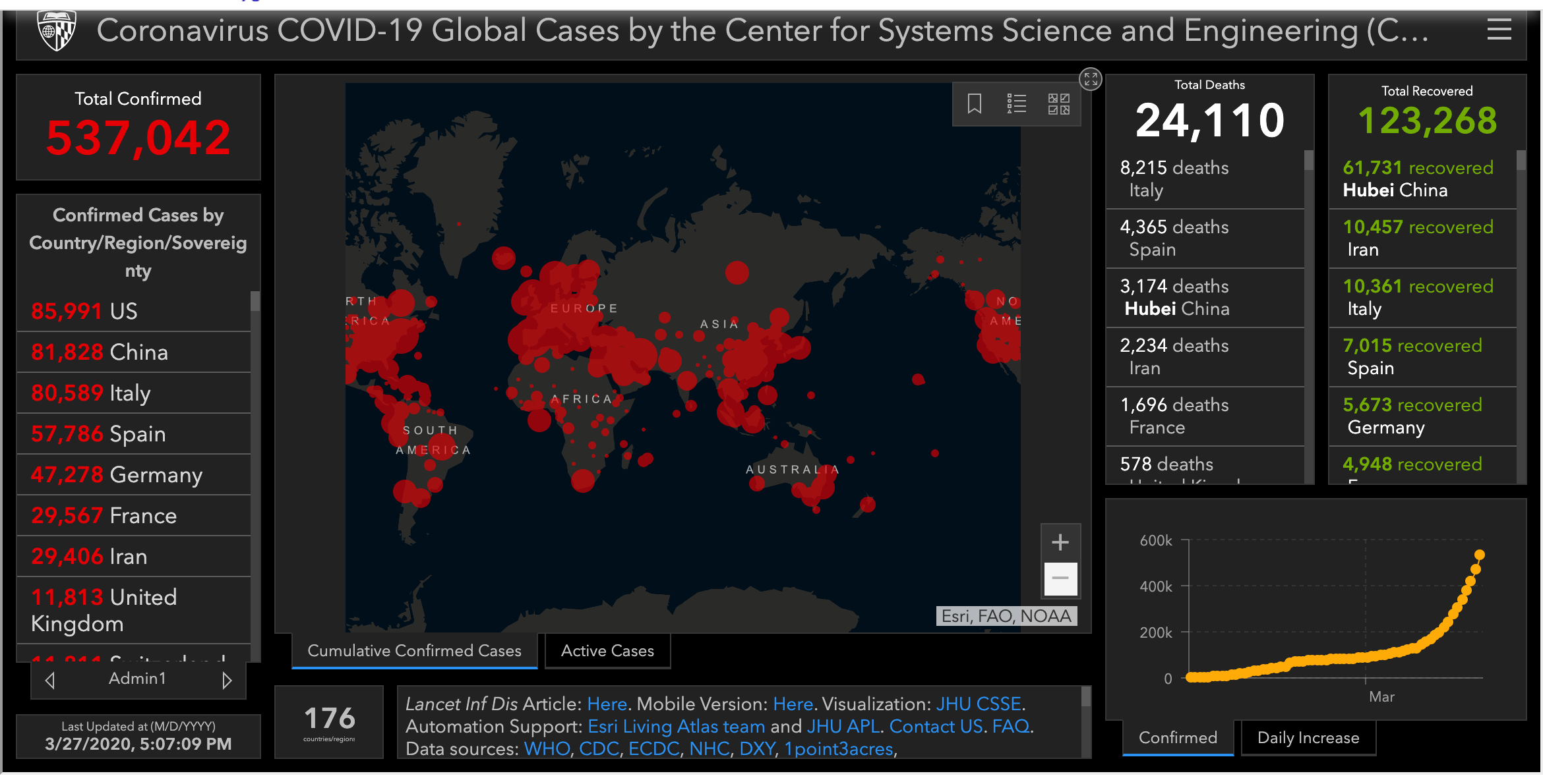 Johns Hopkins CSSE - 미국 존스홉킨스 CSSE 코로나19 현황판 지도 2020