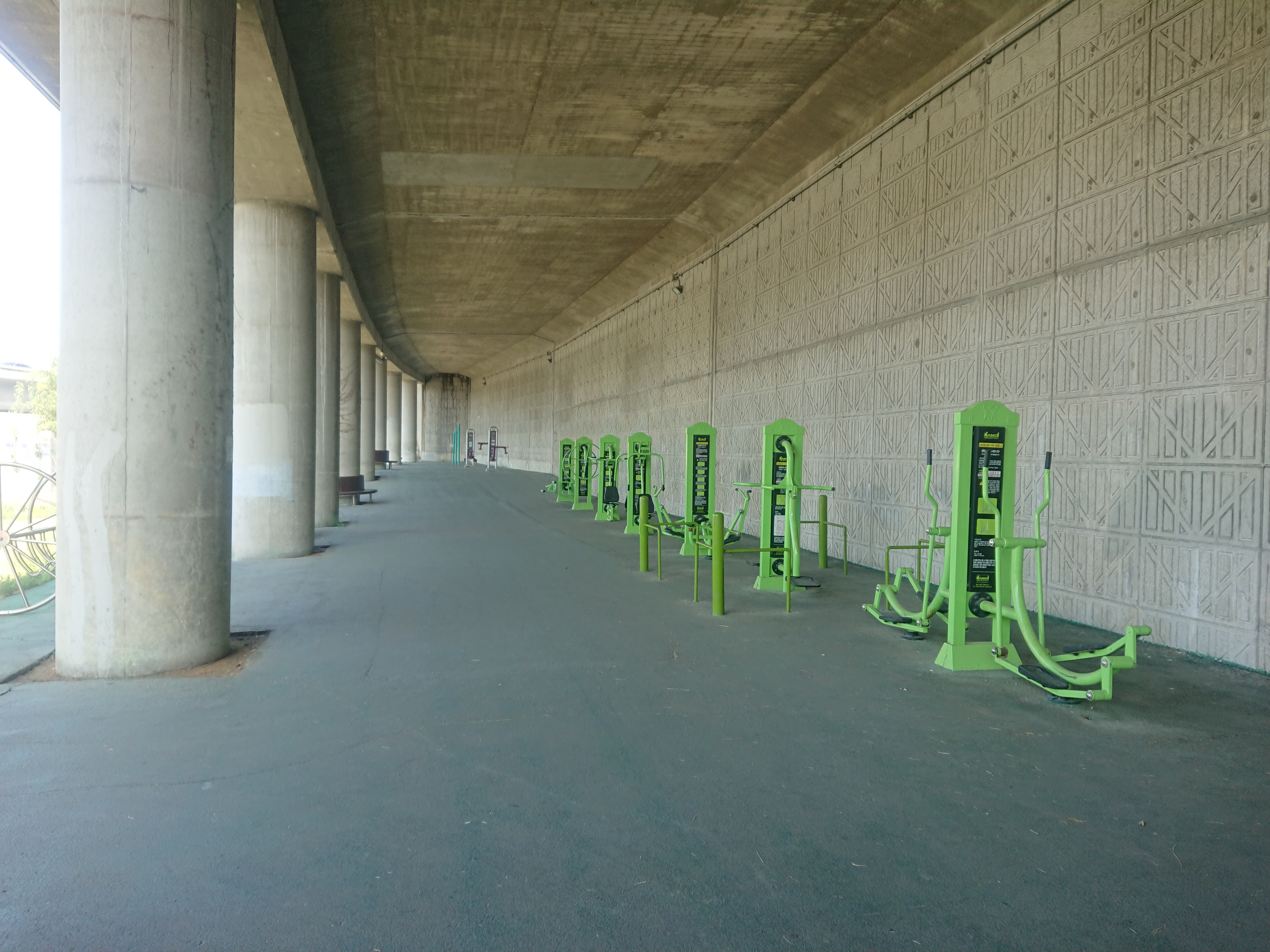 마포종점 나들목에서 동쪽으로 400m 정도의 마포대교 하부 운동기구시설.