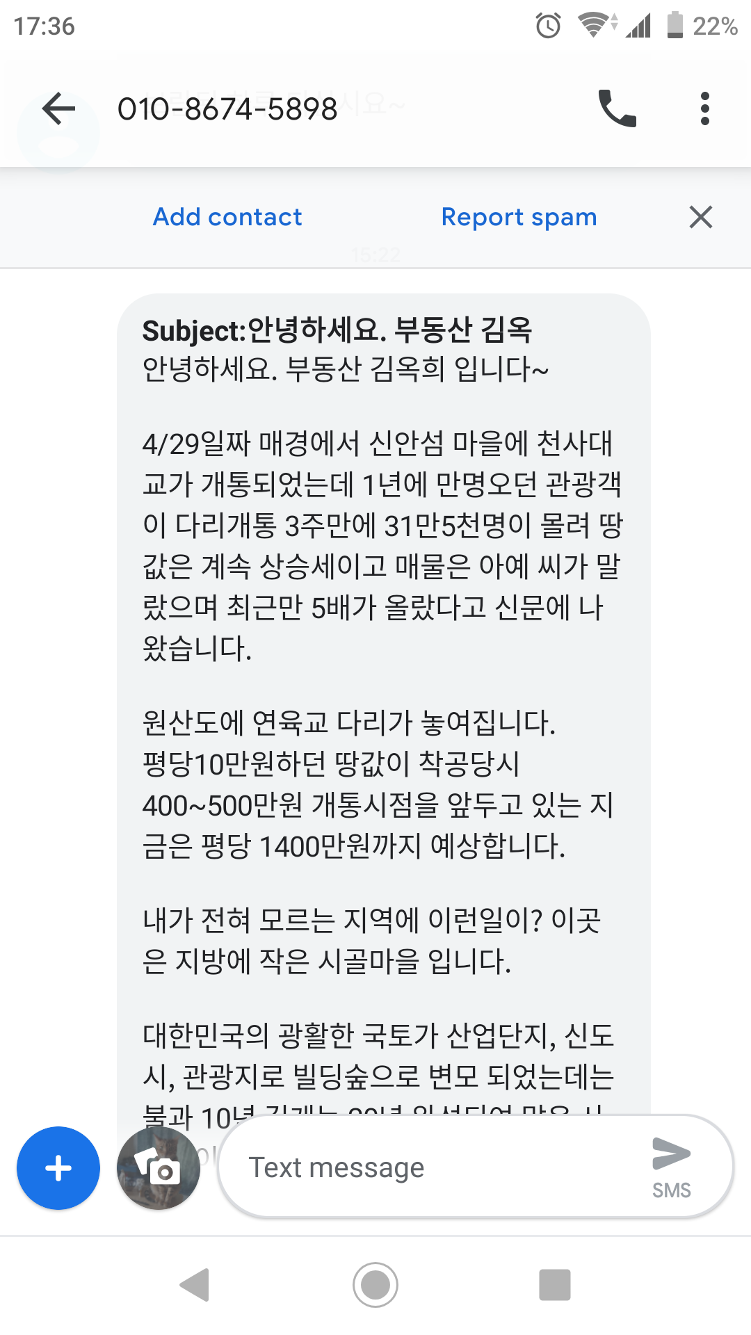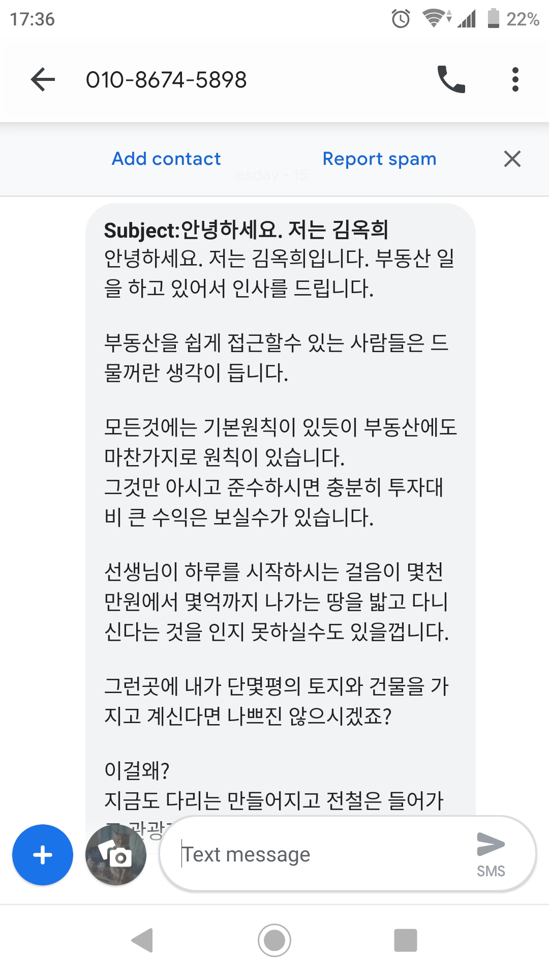 부동산 관련 스팸이네요.