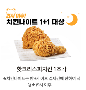 KFC 에서 21시 이후 주문하면 1+1 되는 메뉴들을 잔뜩 .. 넣고 주문을 누르고..