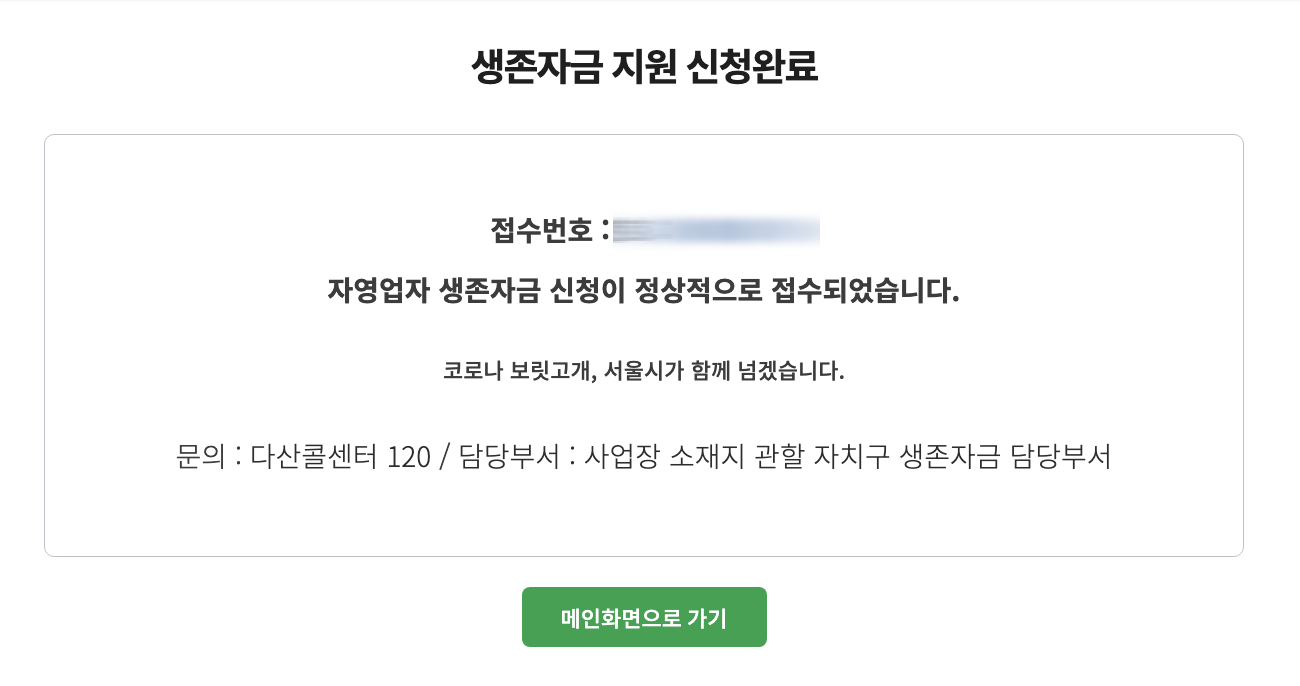 서울시자영업자생존자금 신청 페이지