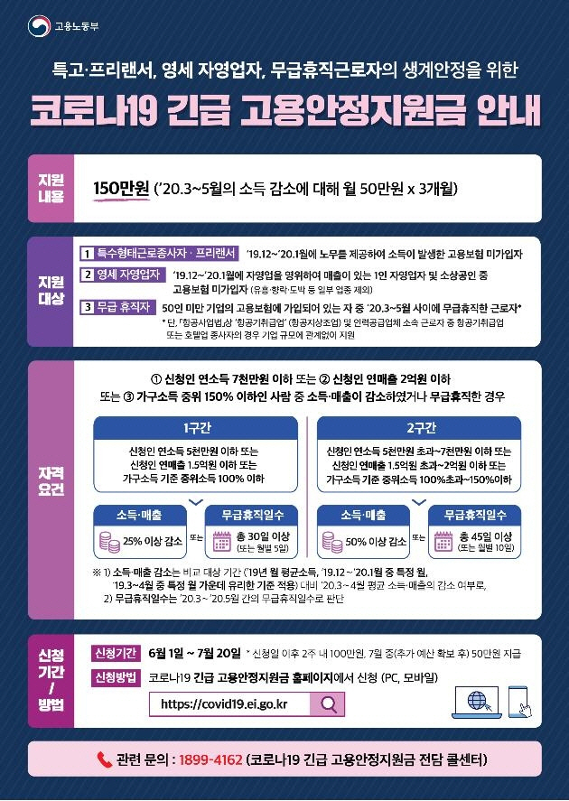 1일부터 긴급 고용안정지원금 신청 접수…'1인당 150만원'