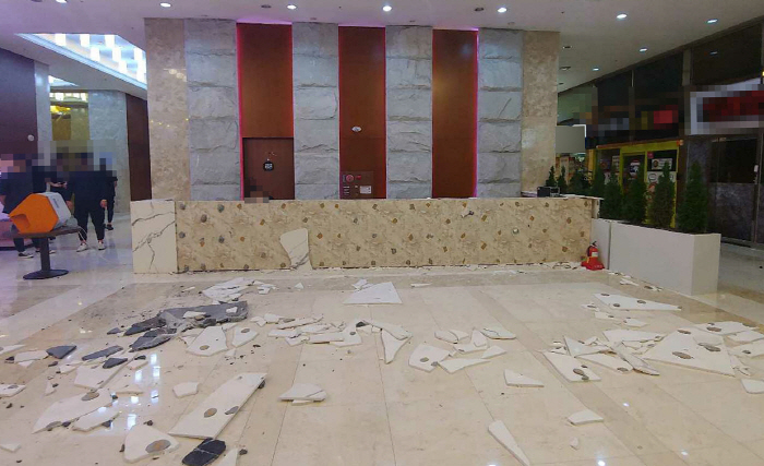 건장한 남성 30여명 새벽 대치…가로 6m 벽면 대리석 와장창 분양형 호텔 기존 운영사·새 운영사 간 운영권 갈등