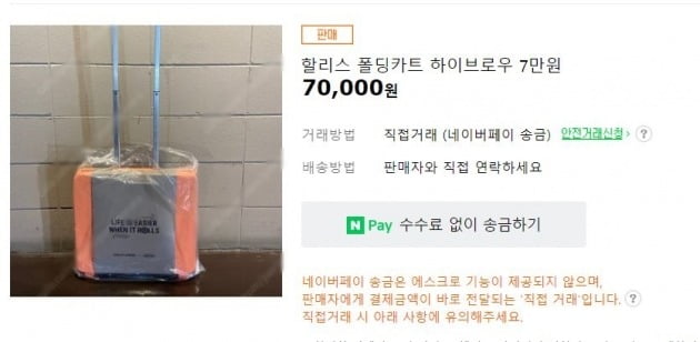 중고 할리스 폴딩카트가 70,000원까지 올라왔네요.