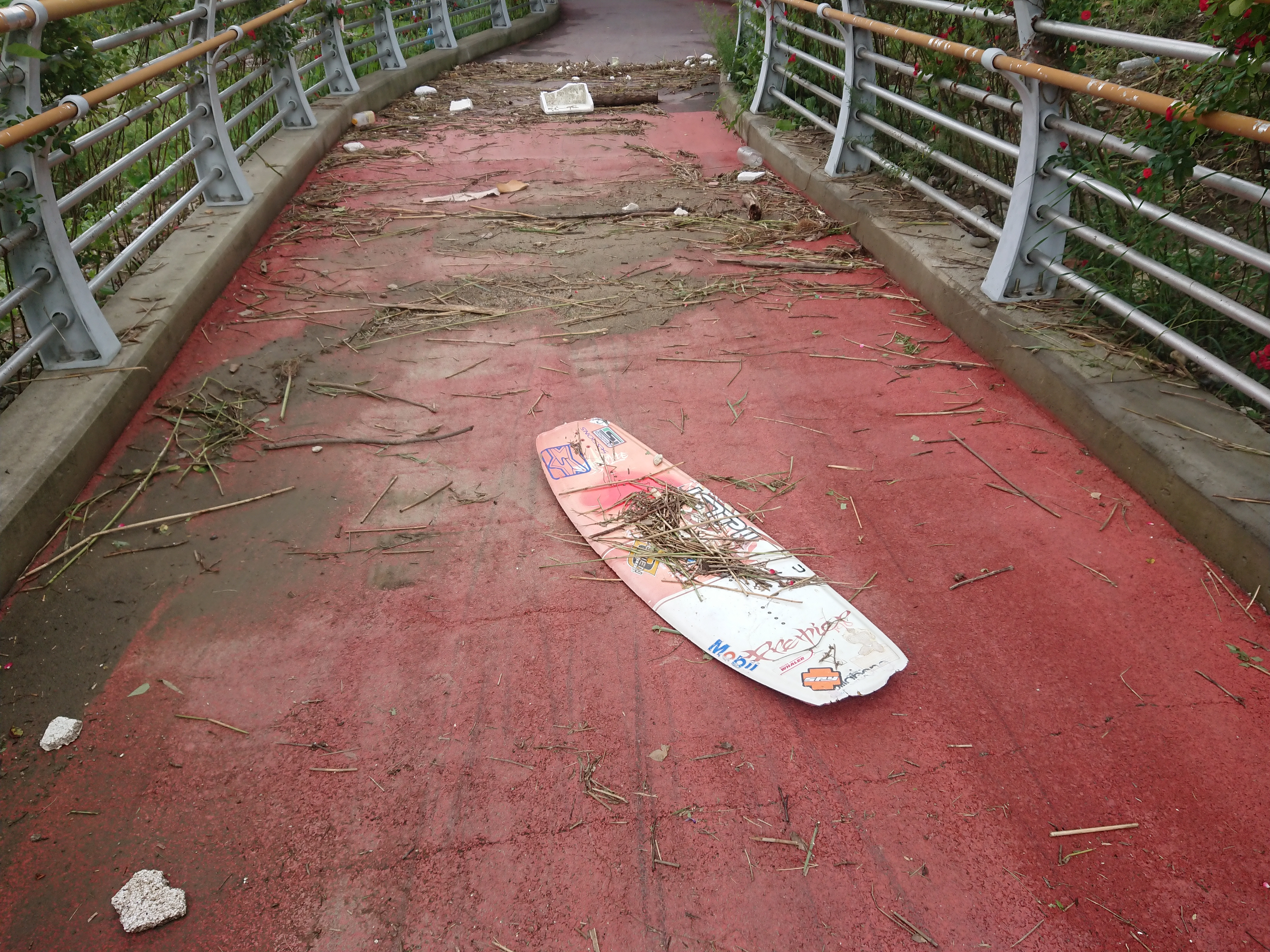 어제 본 그 서핑보드.. 큰크리트 위에 안착했네요.