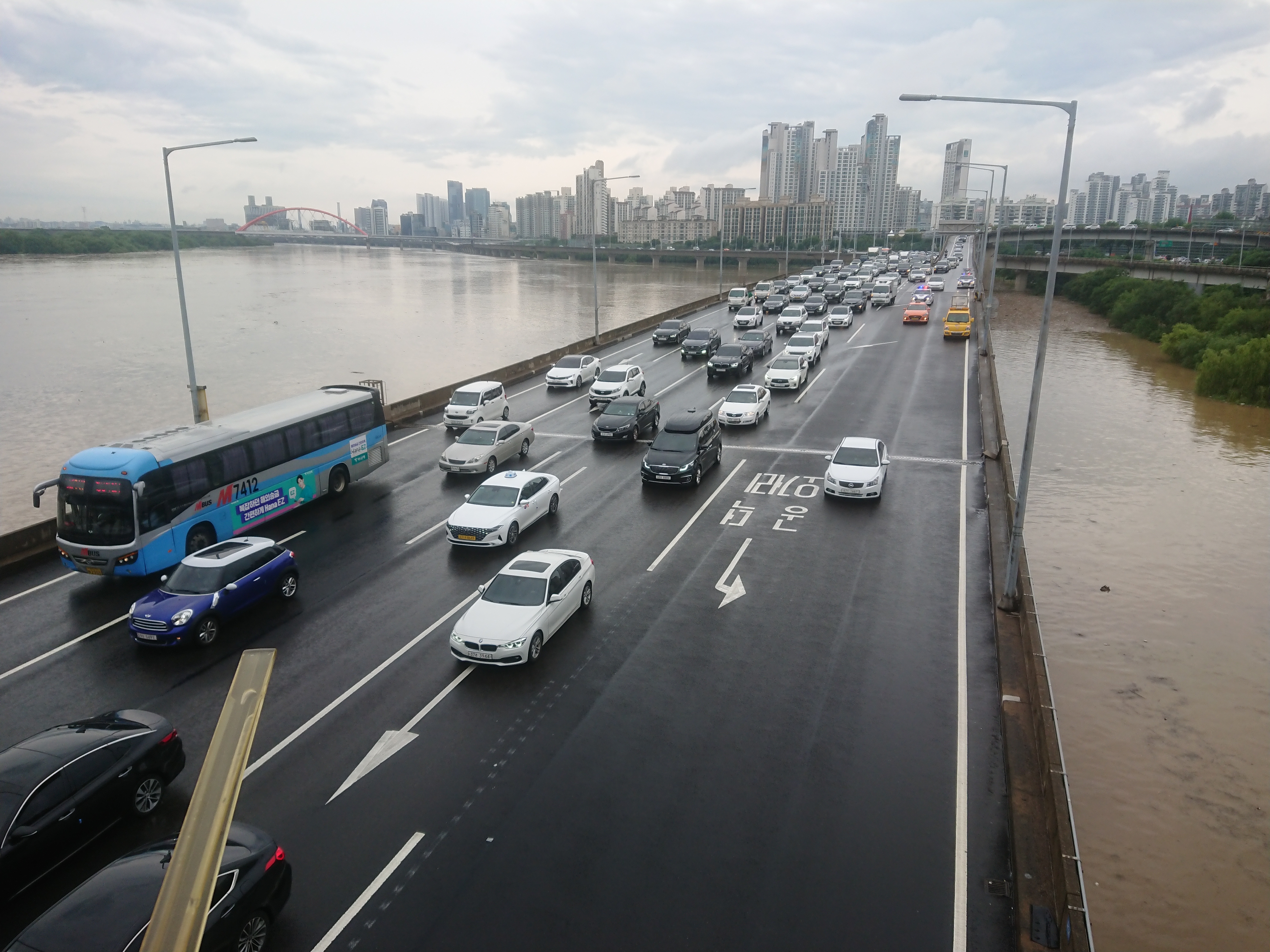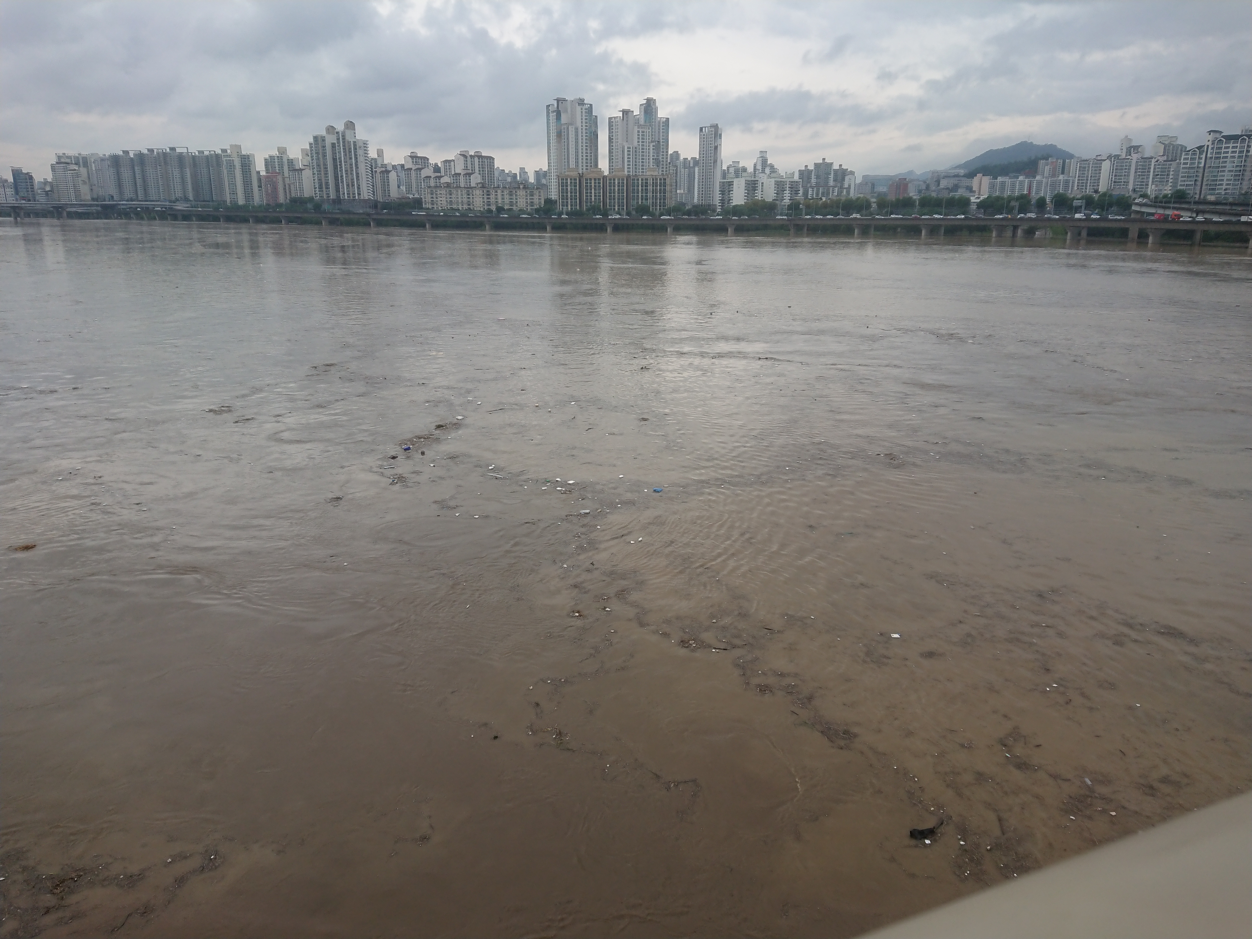 저기 보이는 강변북로 서호교도 물위에 간신히 닿지 않고 있네요.