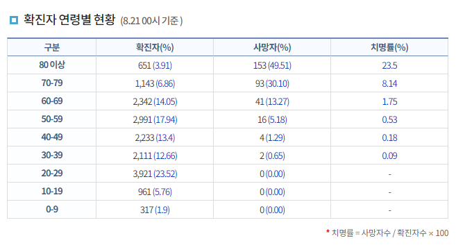 80대 이상은 4명 중 1명이 사망