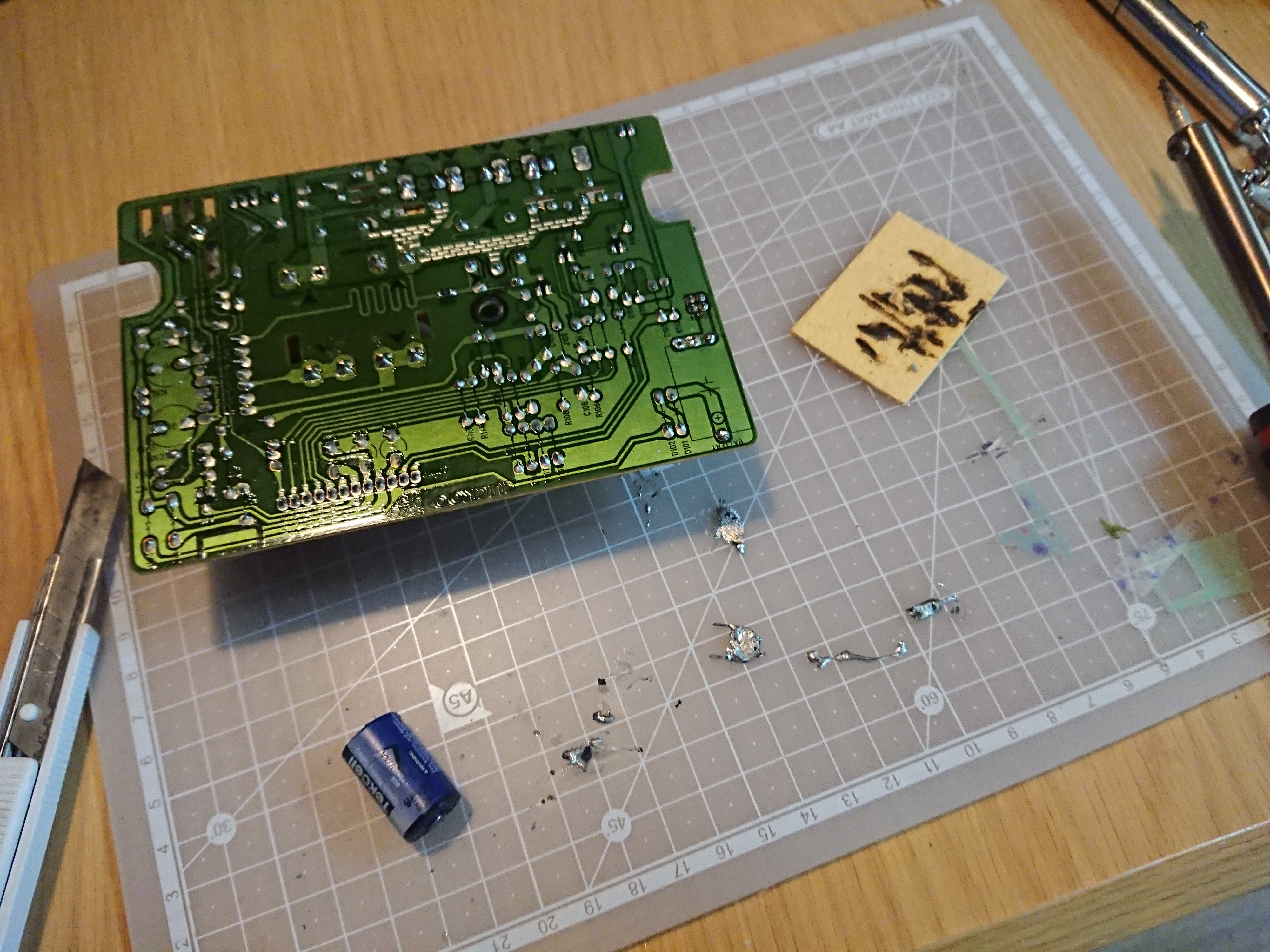 회로를 완전히 드러낸다. 납땜 작업을 위해.