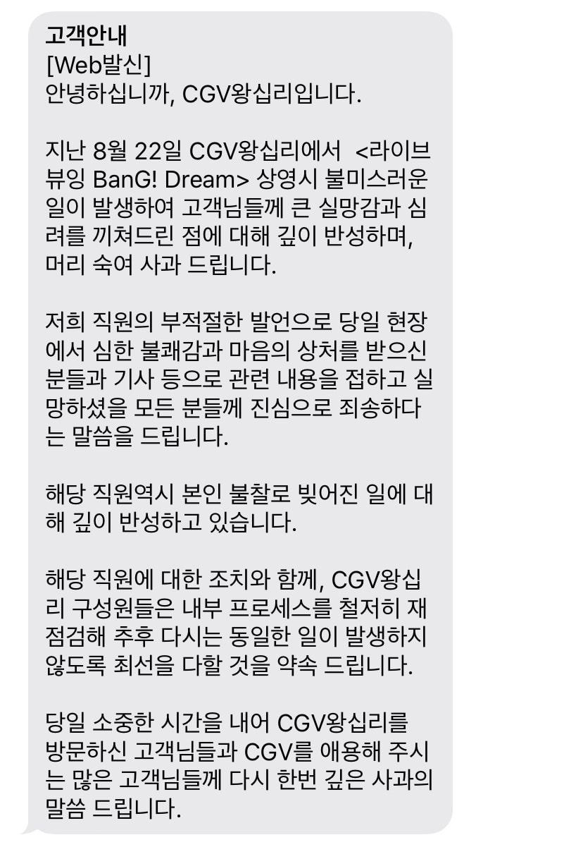 CGV 알바가 극장 찾은 관객들 비하…"오타쿠들 징그럽다", CGV 왕십리점 알바생, 마이크 꺼진 줄 알고 언급 CGV측 "퇴장인사시 사과 말씀드려…세심히 조치"