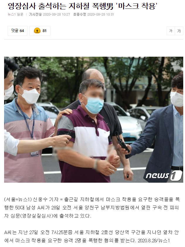서울 영등포경찰서는 출근길 지하철에서 마스크를 써달라고 요구한 승객을 폭행하고 난동을 부린 혐의로 50대 남성을 체포해 구속영장을 신청했습니다.