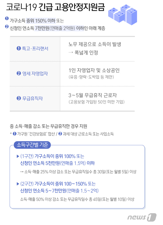 고용 취약계층에 대한 1인당 최대 200만원의 생계 안정금이다.