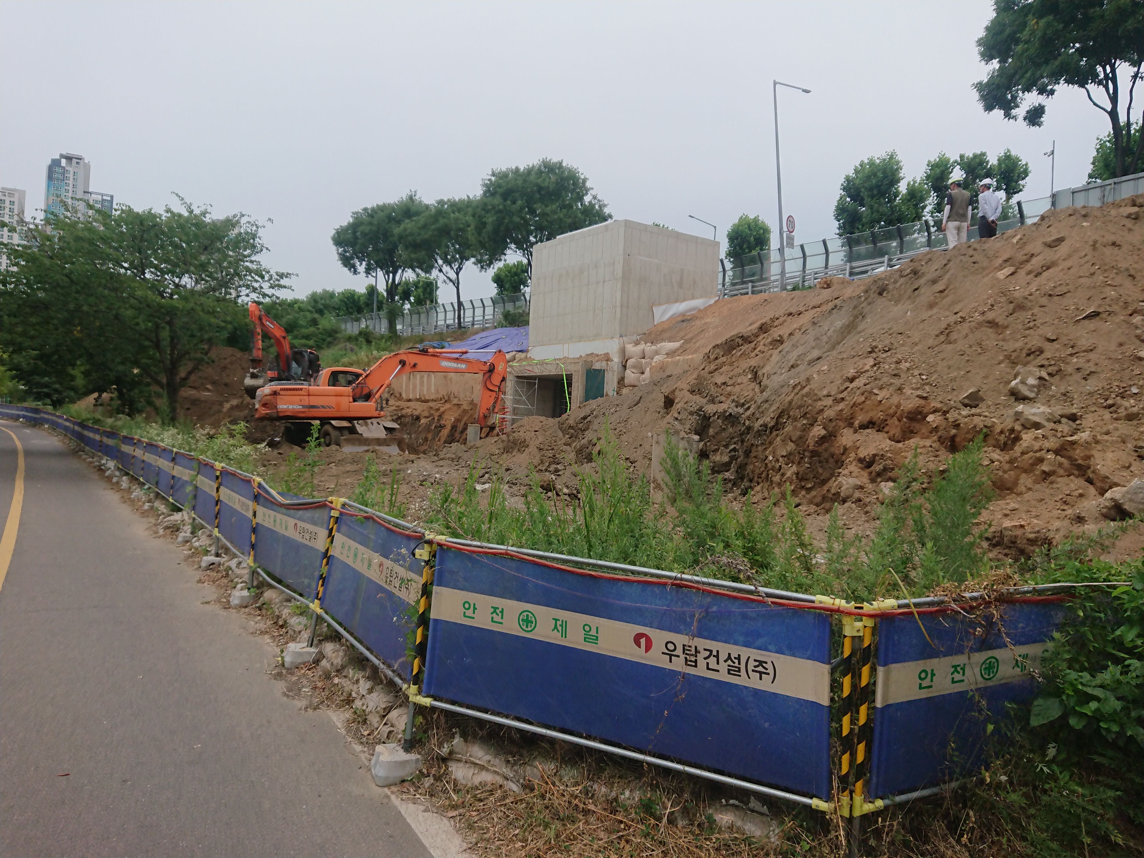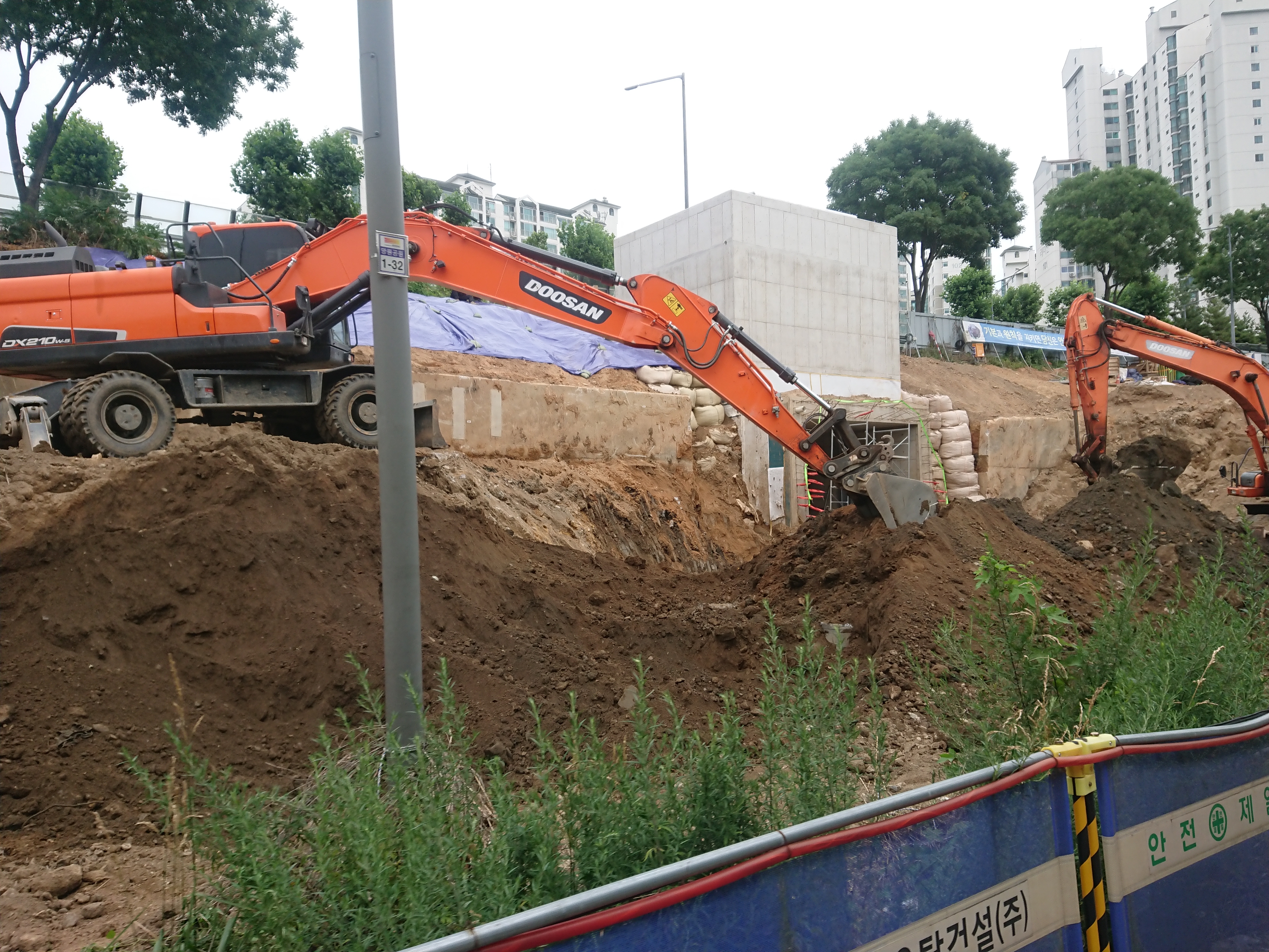 신마포 나들목 공사현장 오늘은 포크레인 두대가 열일중.
