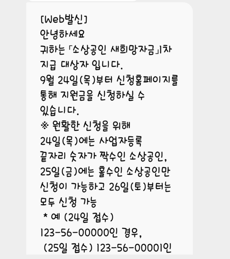2. 사업자 홀수인 사장님중 오늘 (24일) 오후에 문자를 받은분(간이과세여도) 들도 있다. (꼭 23일에 오지 않았다 해서 못받는 것은 아니라는 말)