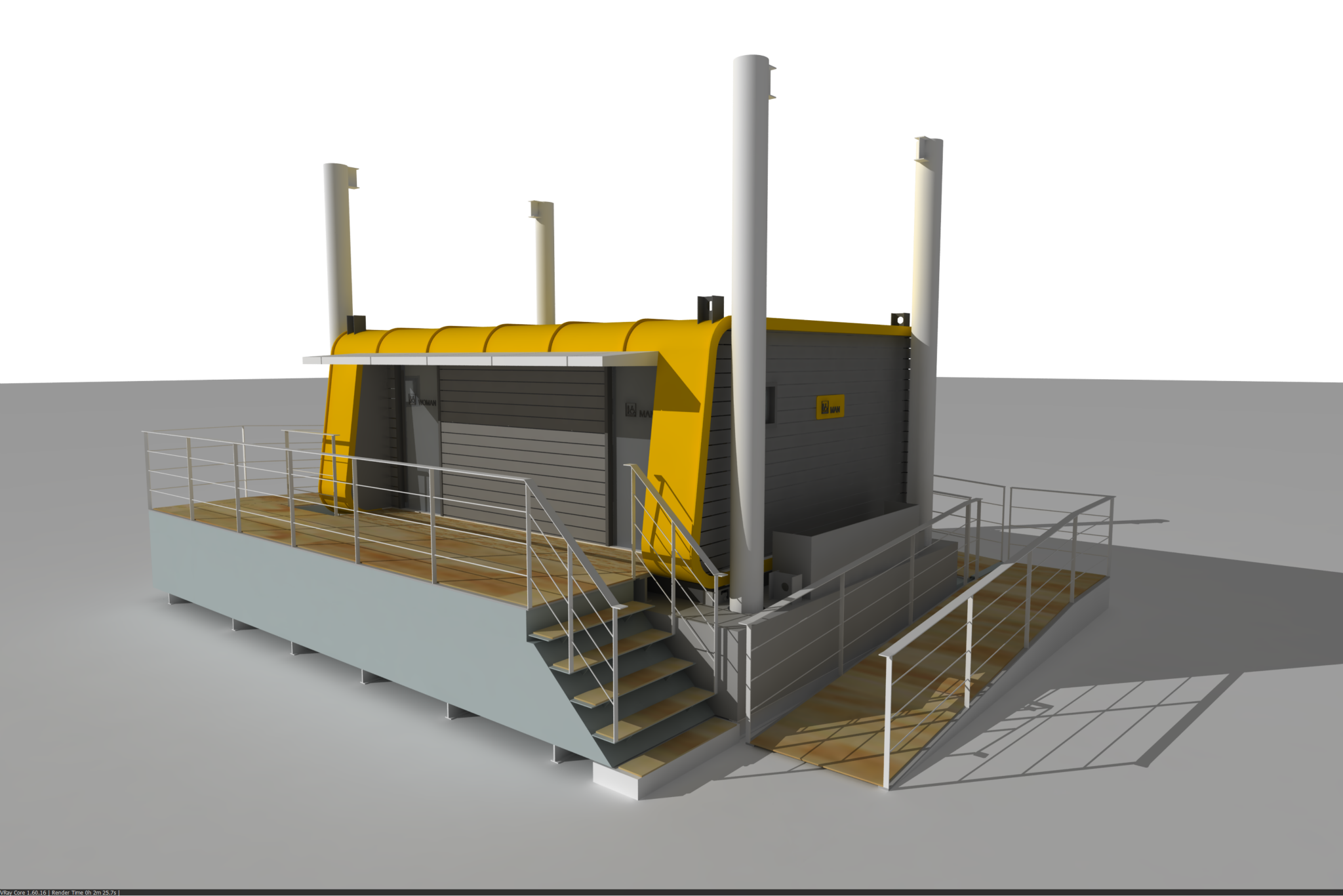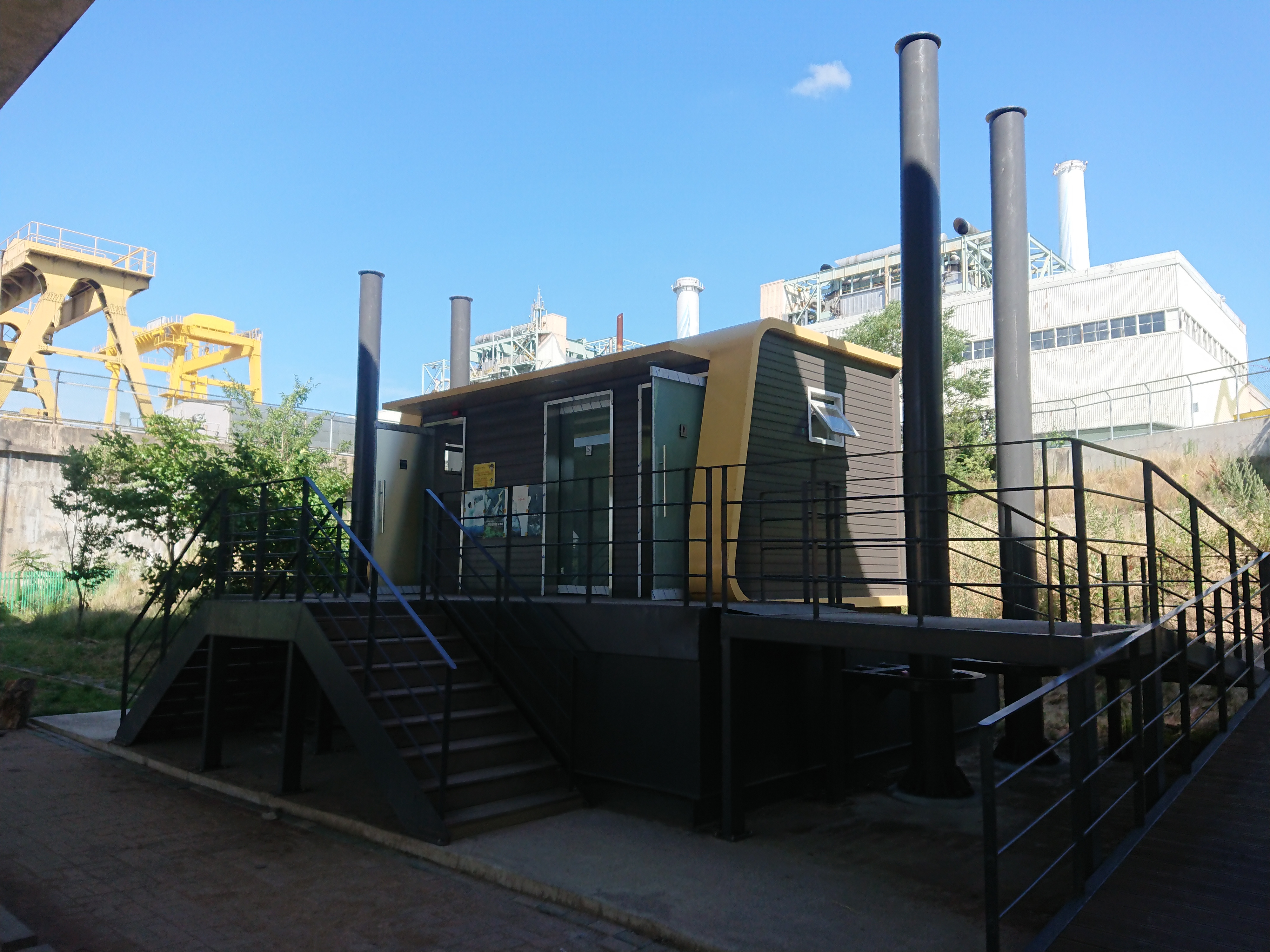 한강에는 총 18개의 부상형 화장실이 있다 ( 2017년기준) 말 그대로 홍수로 물이 불면 화장실이 뜬다는 것. 이게 무슨 소린가 해서 보았더니 다음과 같이 가드레일이 설치되어있고 화장실이 바닥에 고정되어있지 않다.