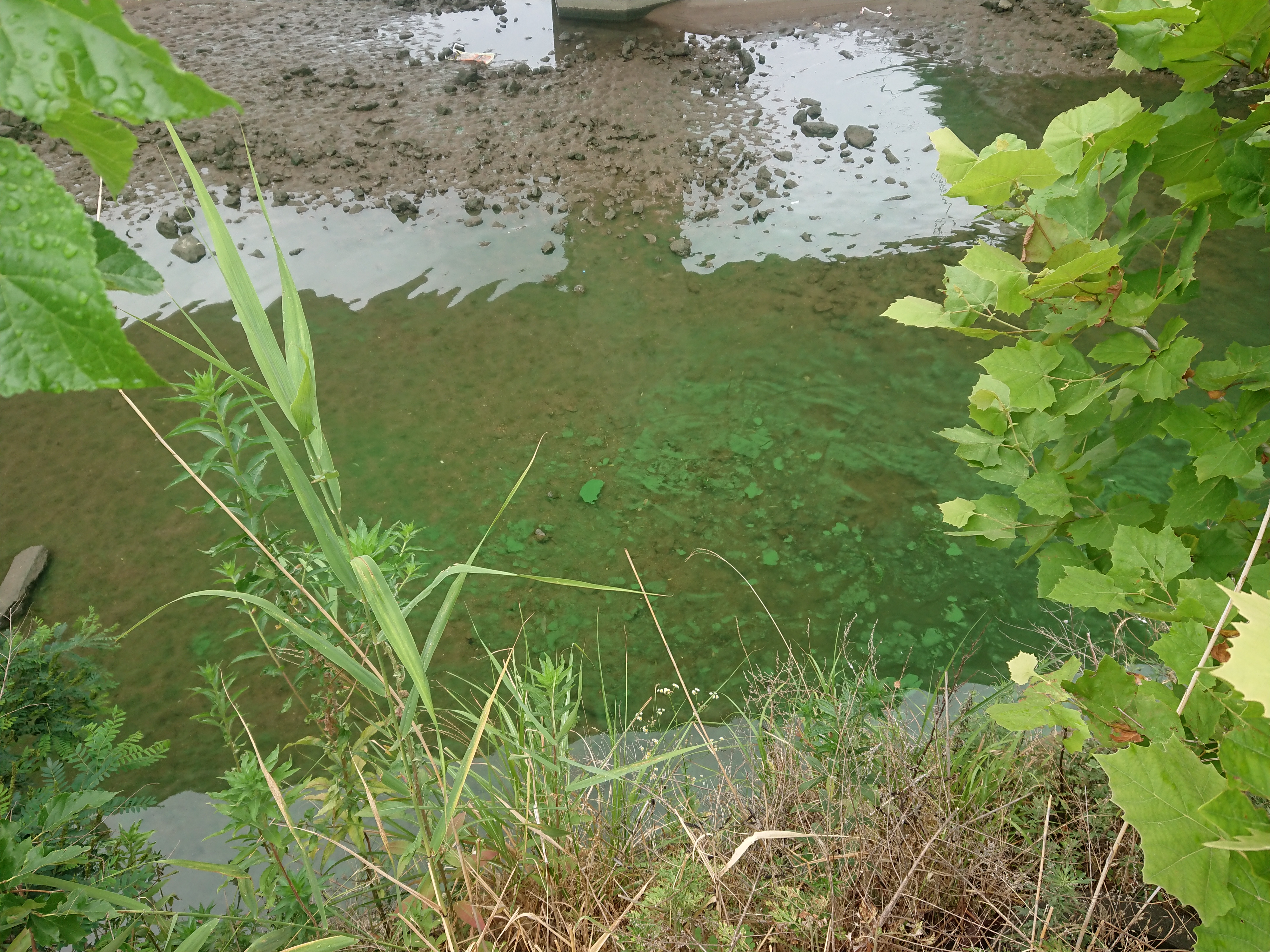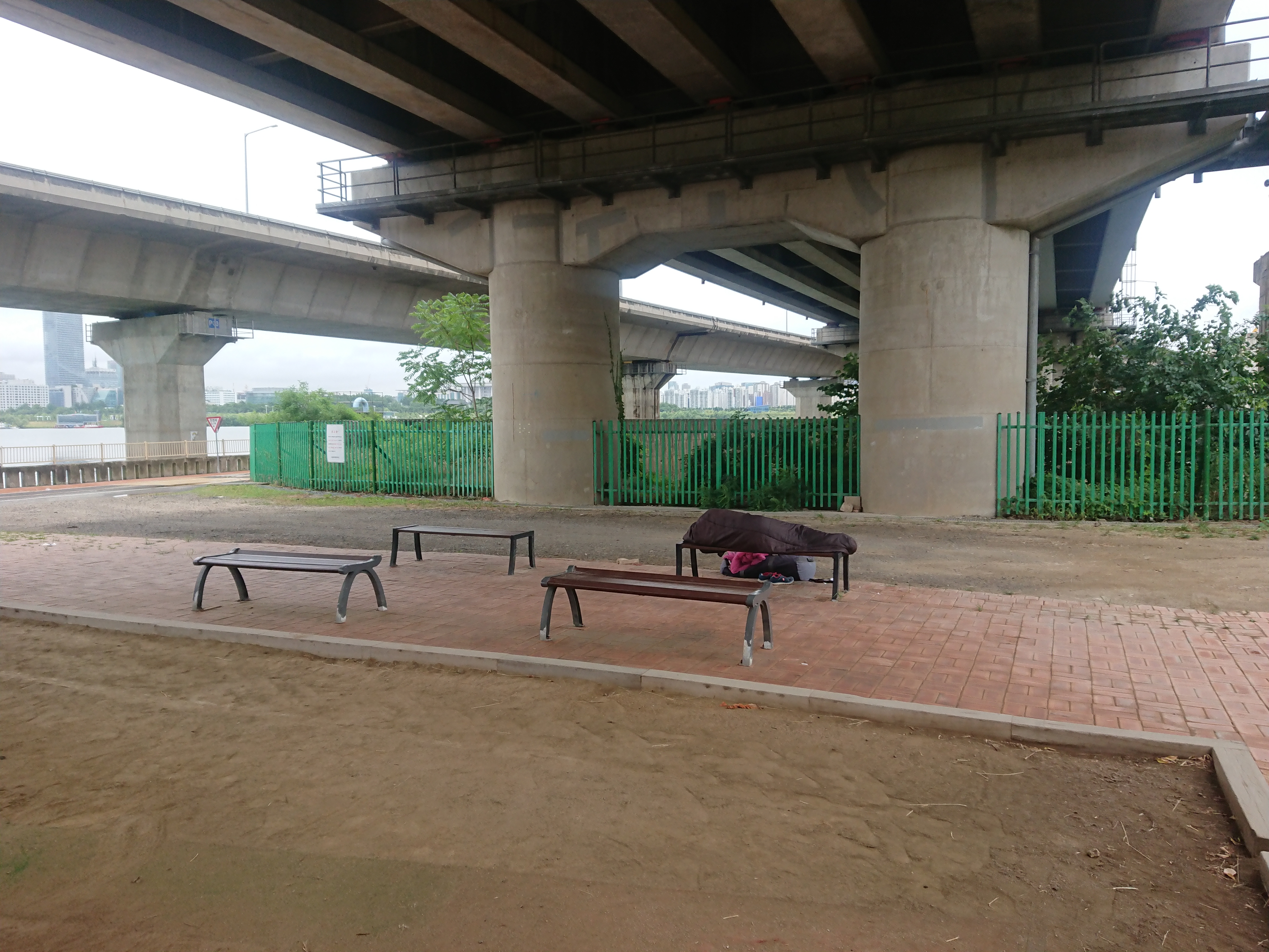 서강대교 북단 하부. 멀리서 보니 코타키나발루에서 보던 에머랄드 및깔로 보이길레 어머나 세상에 어제 비오고 한강이 정화된 걸까? 하고 가까이 가보니 진녹색의 녹조가 잔뜩이다.