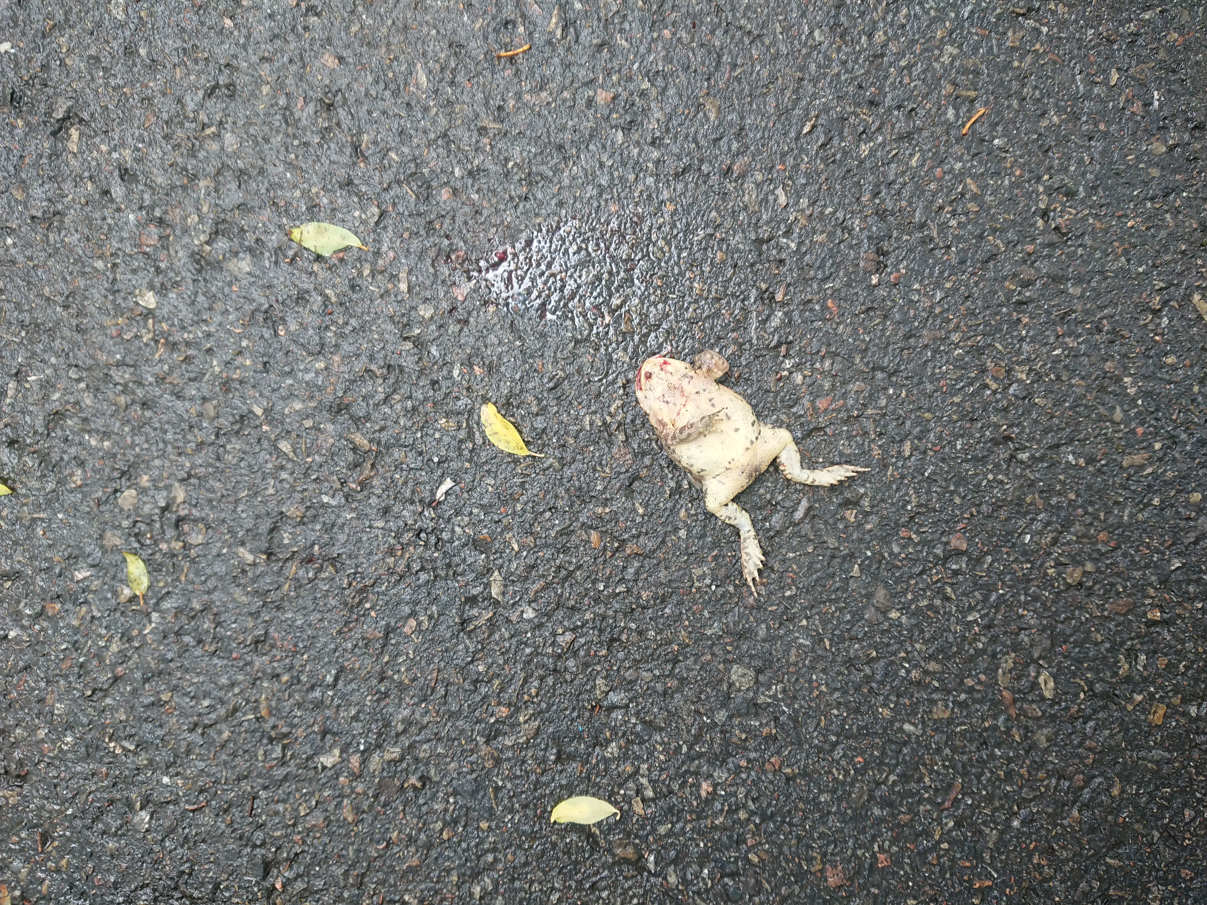 비와서 외출했던 두꺼비가 자전거에 치였나보다.