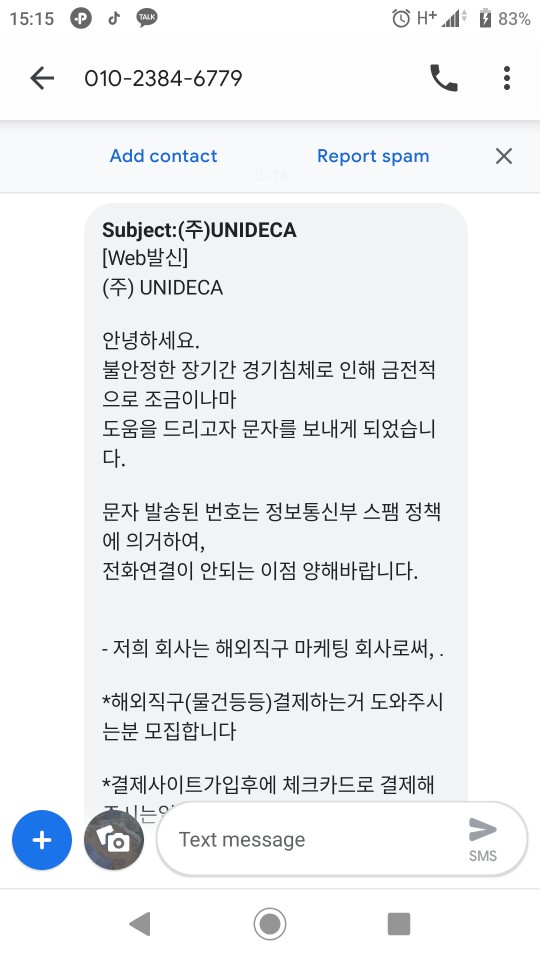 부동산 투자 스팸에 이어 신종스팸으로 보입니다.